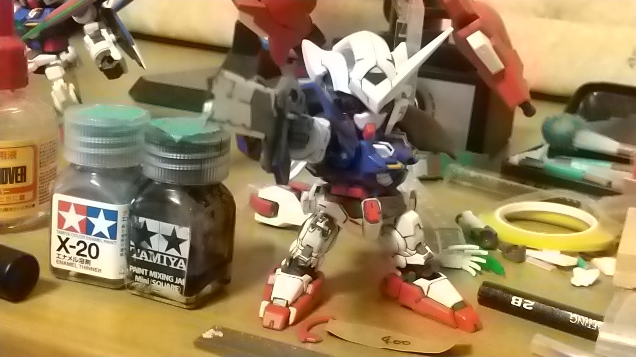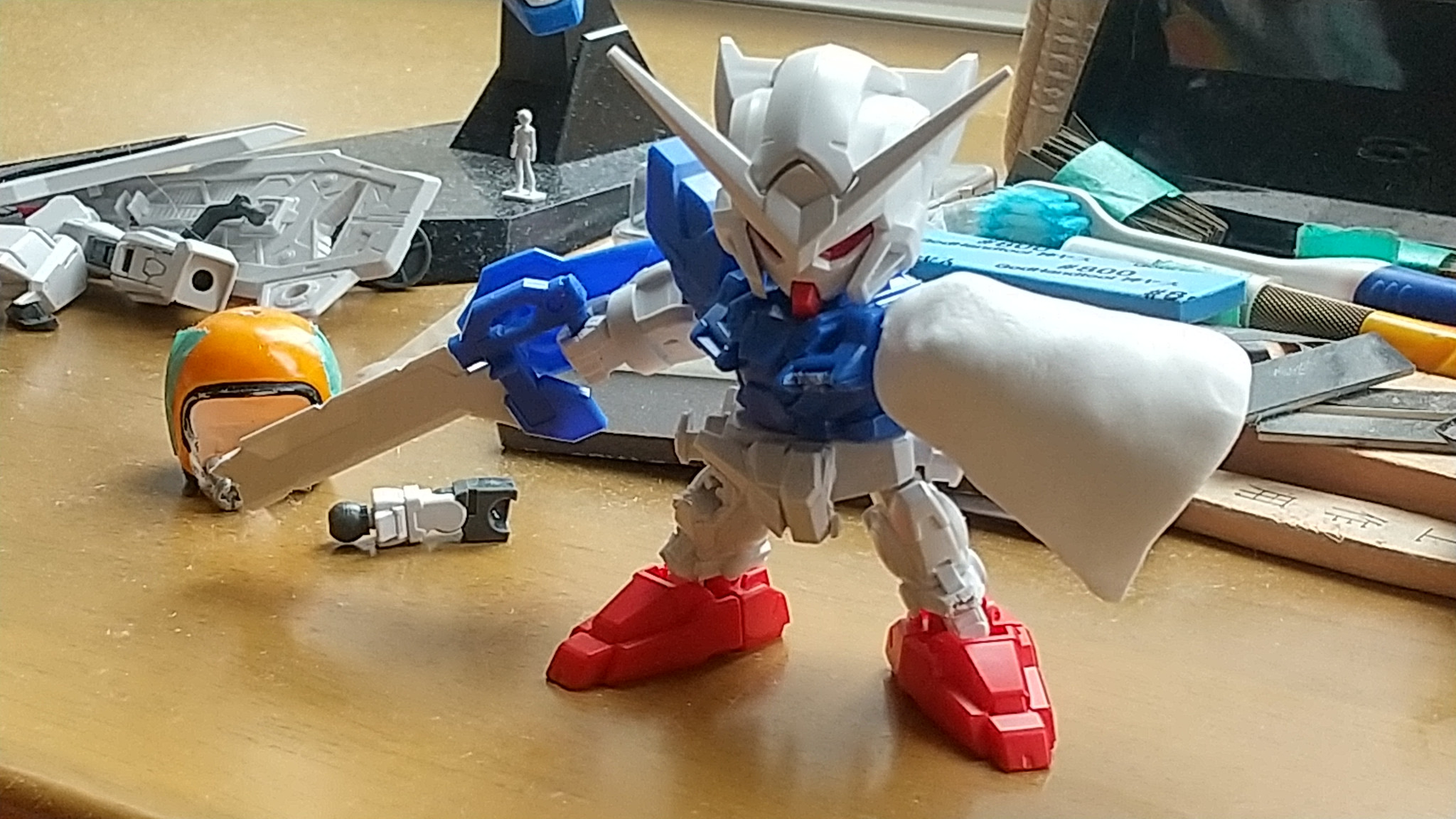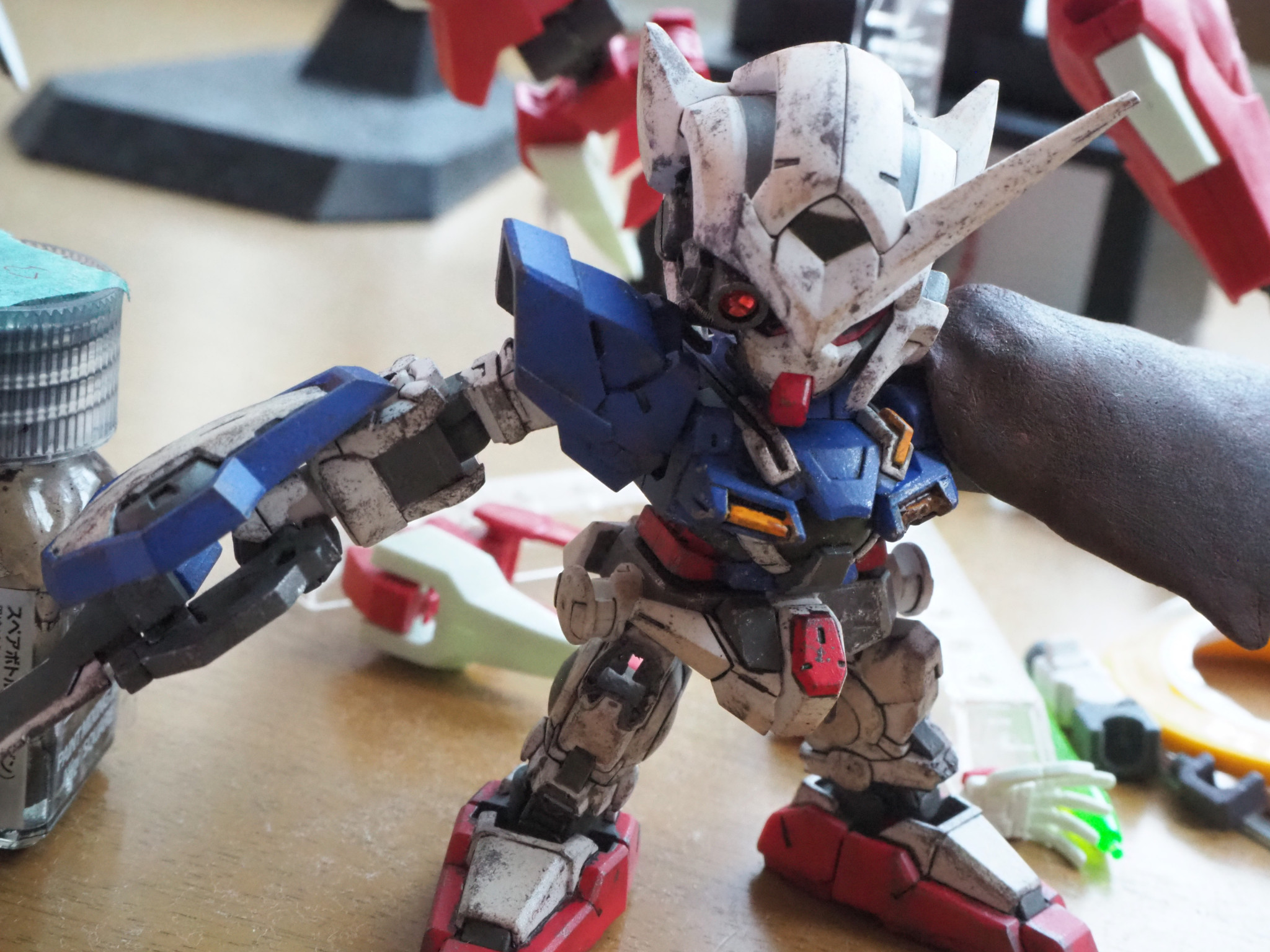 SDEXエクシアを設定画とアニメを見ながらクラッシュしたりジャンクパーツを付けてリペア化しました