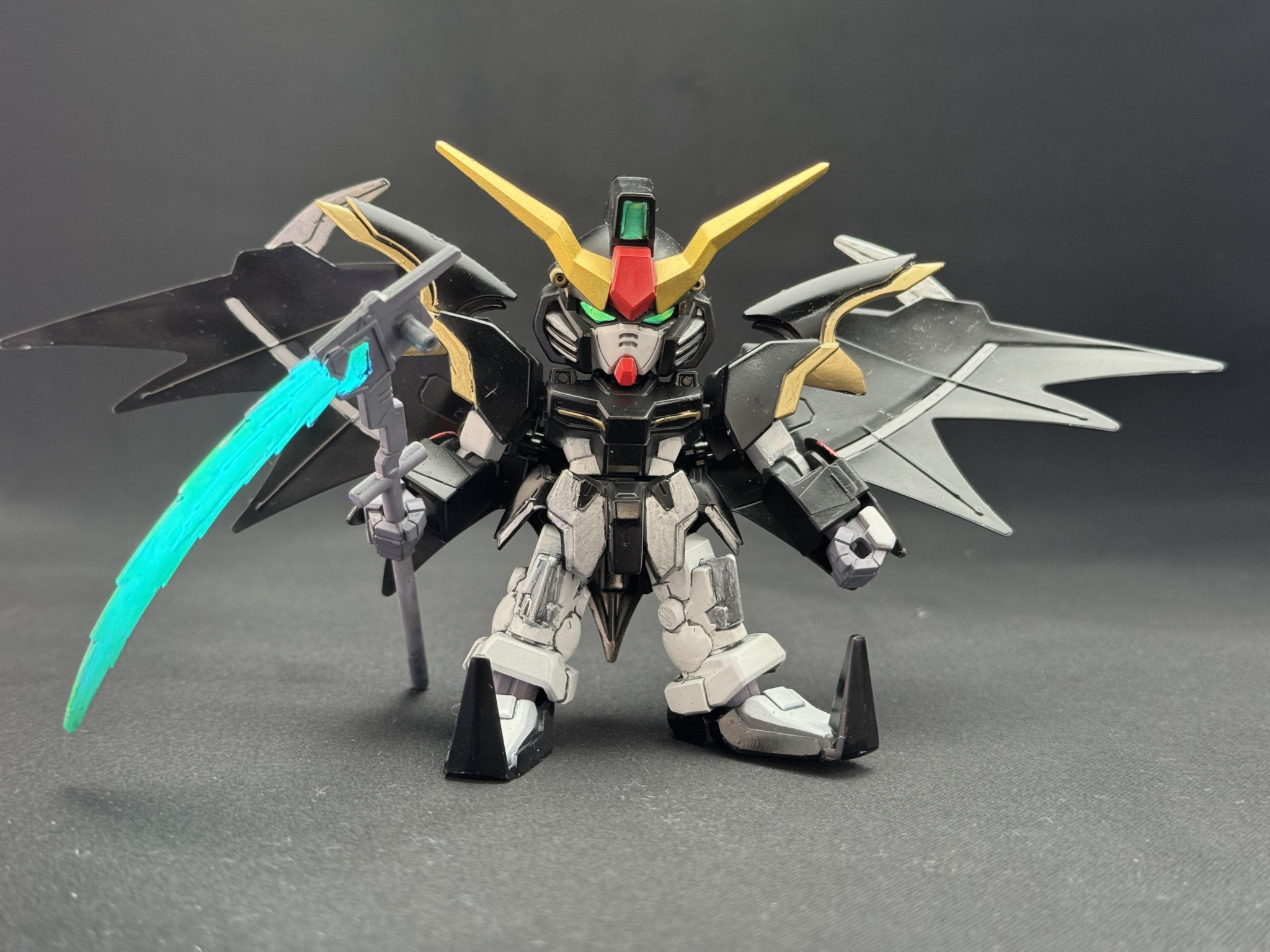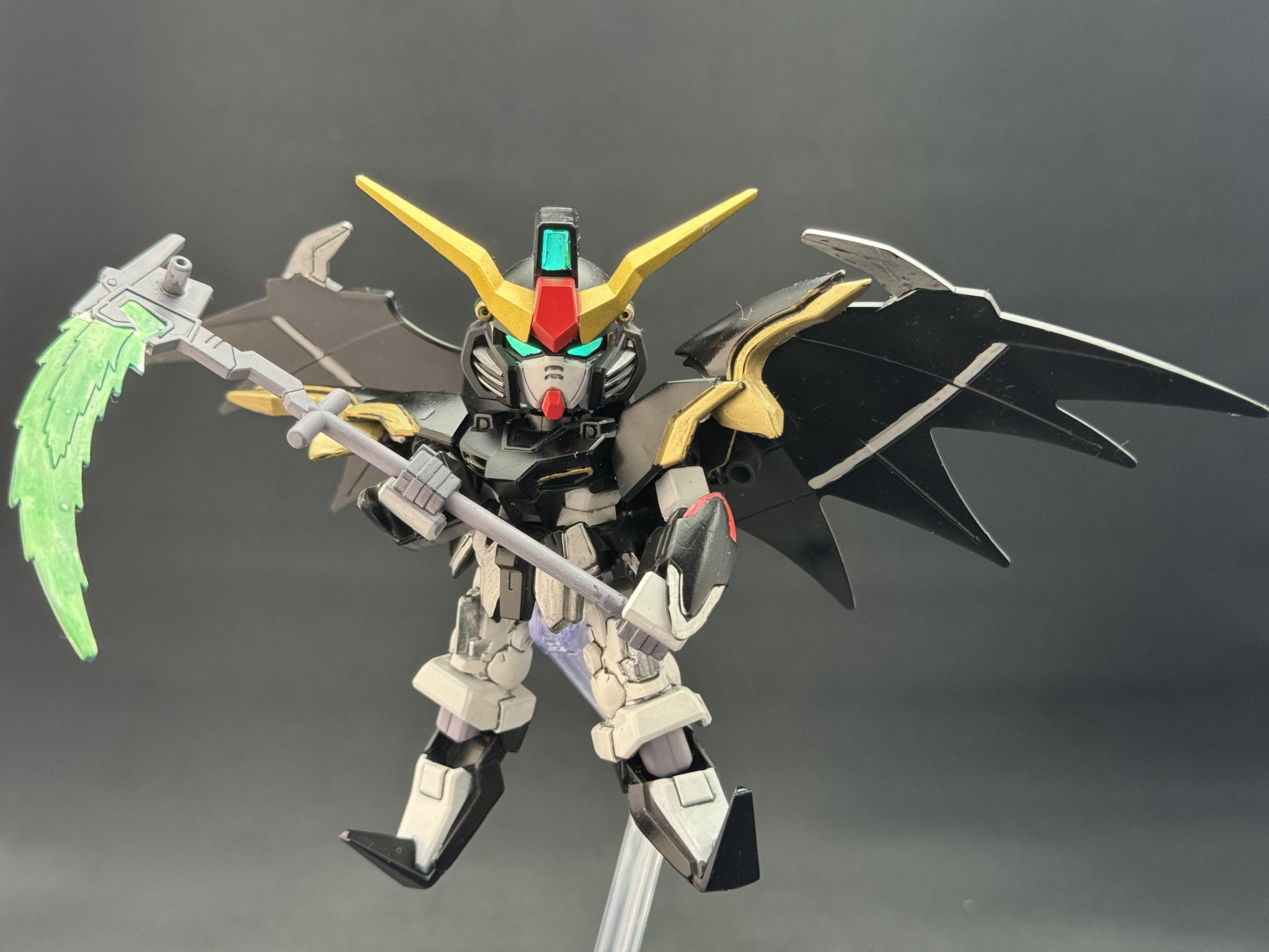 SDガンダム EXスタンダード の ガンダムデスサイズヘルEWですメガ。TV版のデスサイズが好きなので、デスサイズっぽい配色にしました…
