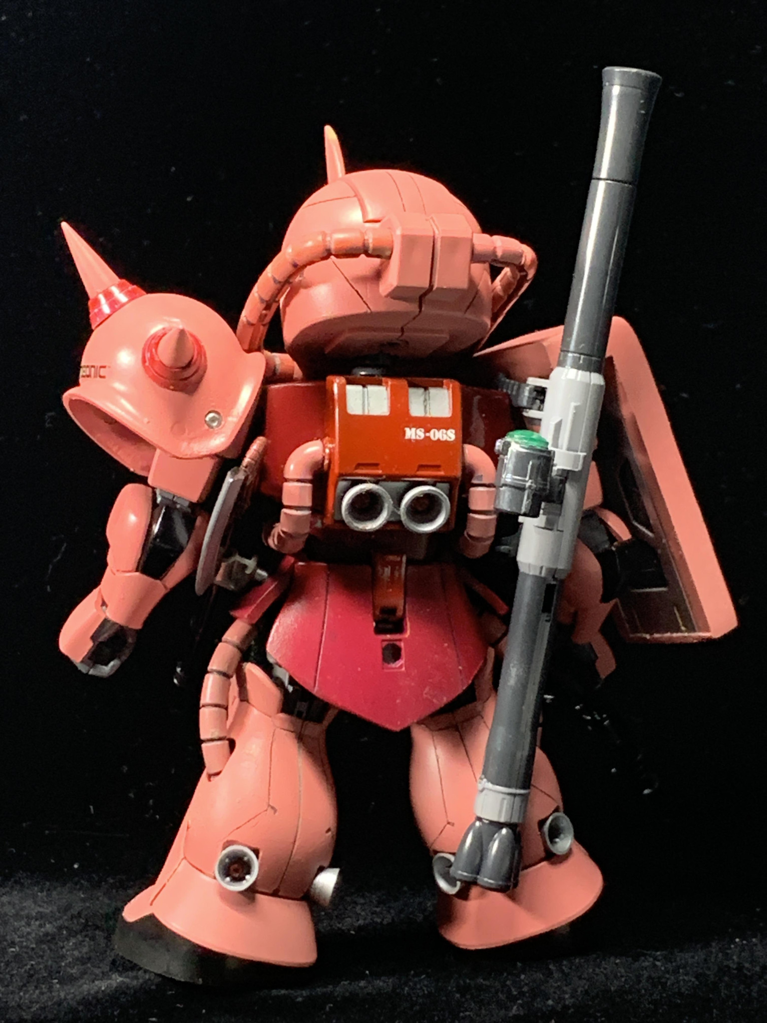 SDとHGのキットを使用しMGSD風のシャア専用ザクⅡを制作しました。
