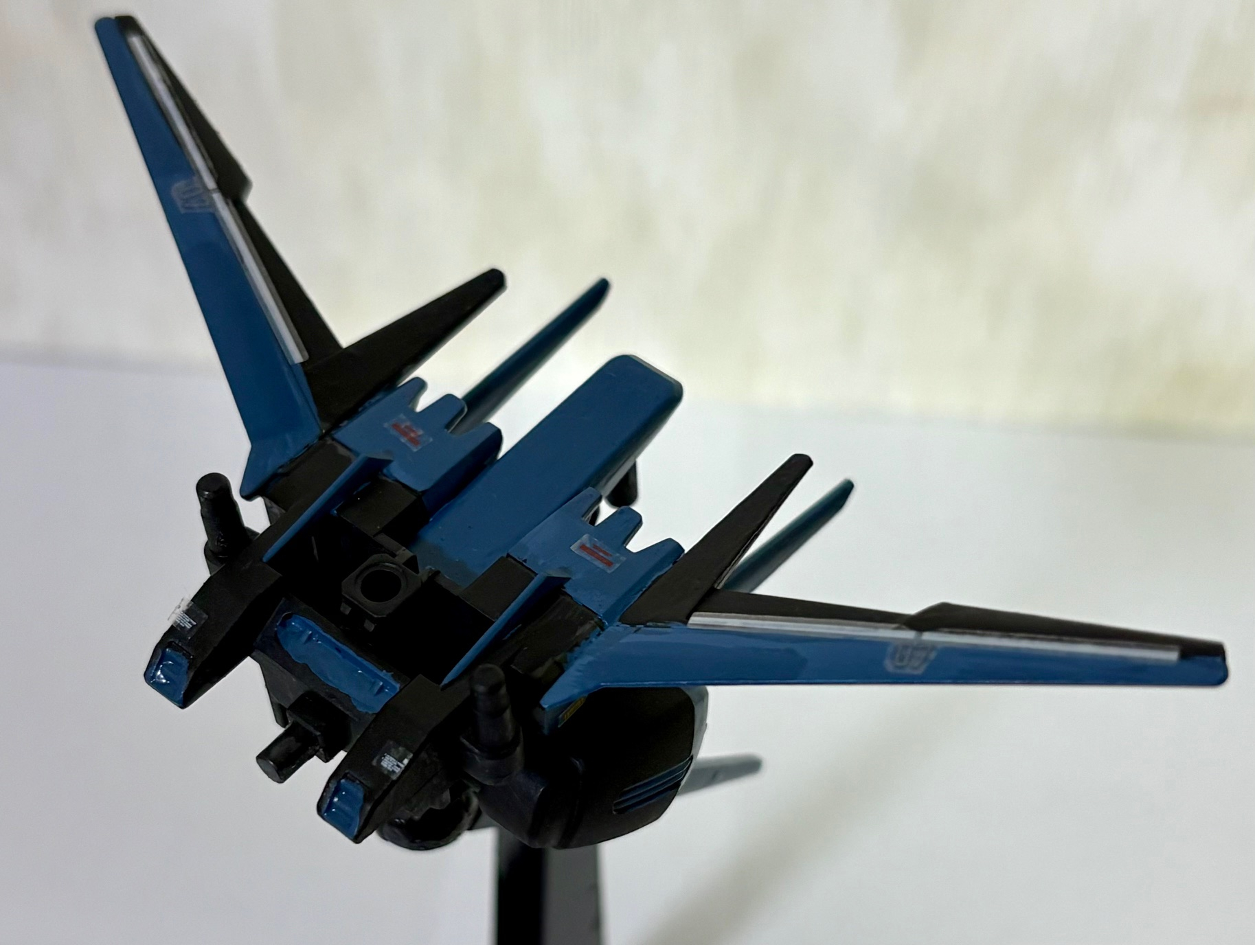 エールストライカーにもデカールを貼り、リアルタイプGファイター風に塗装。ミディアムブルーで塗るとステルス機みたいだなぁ。