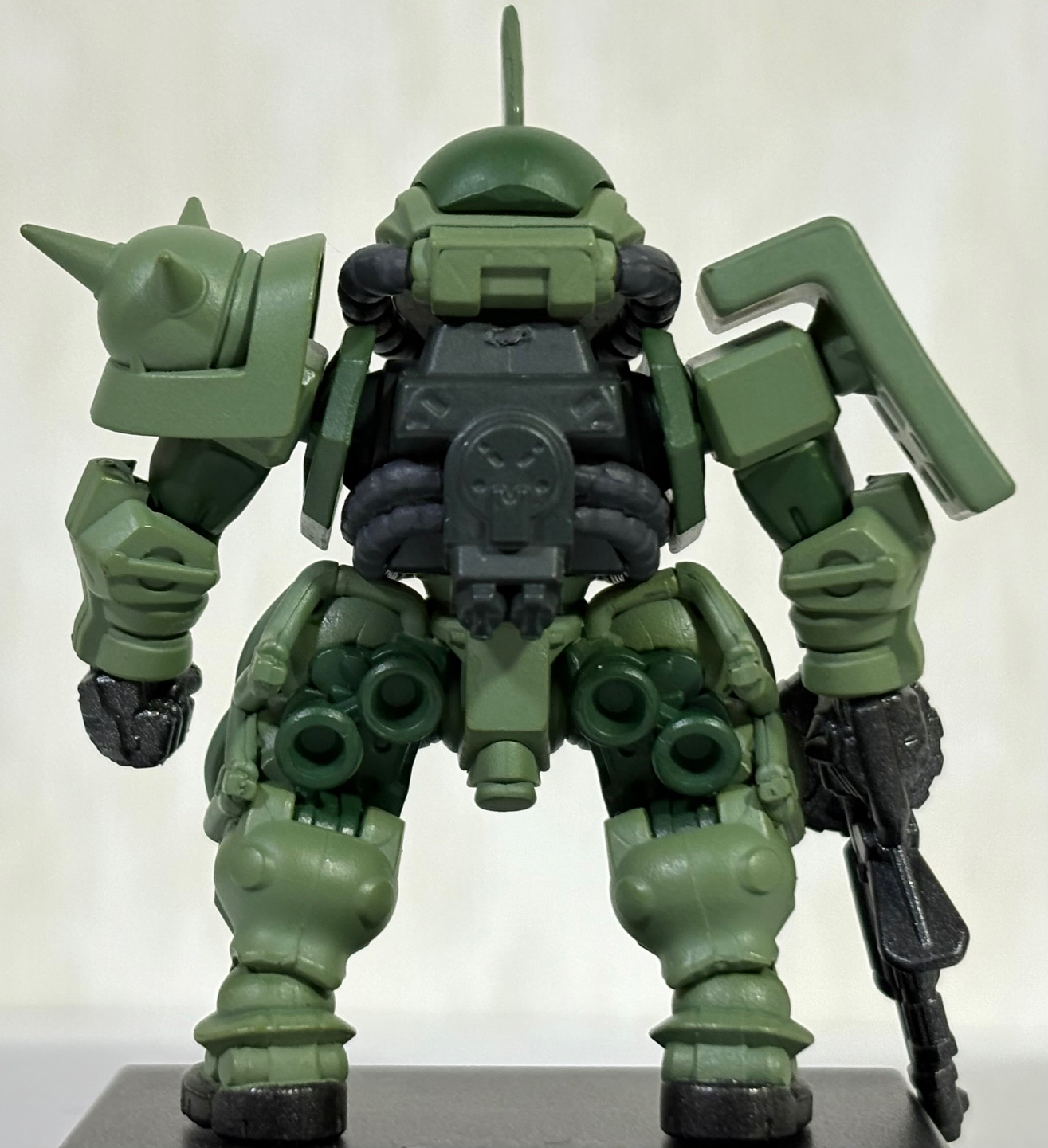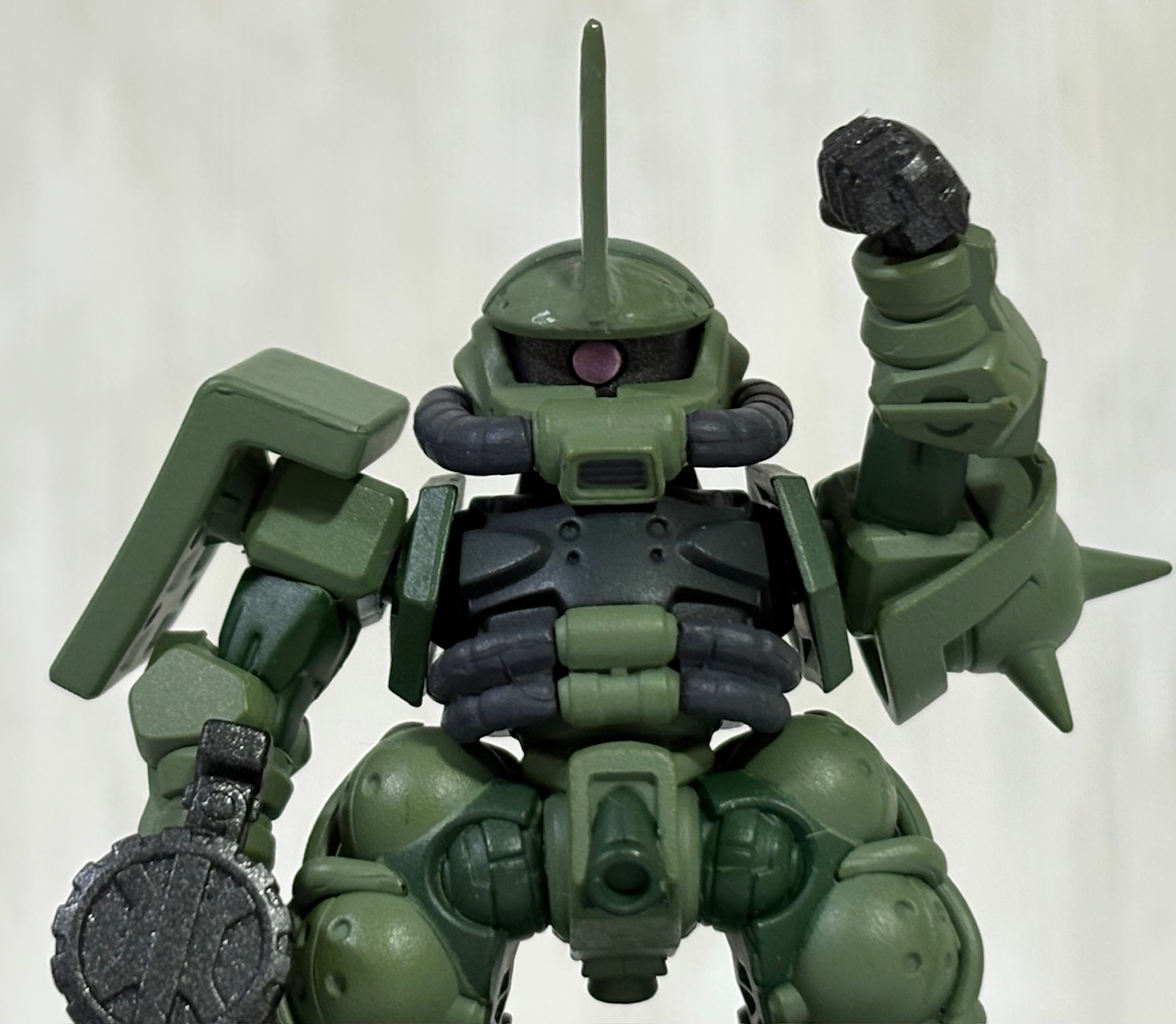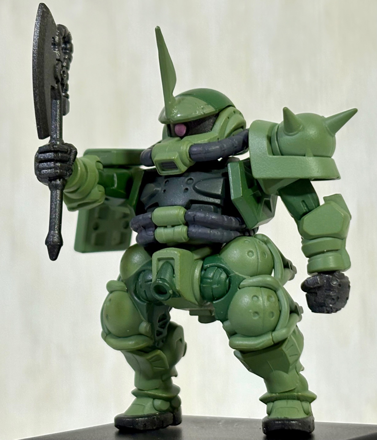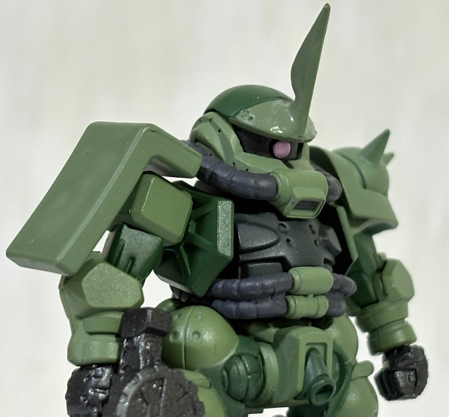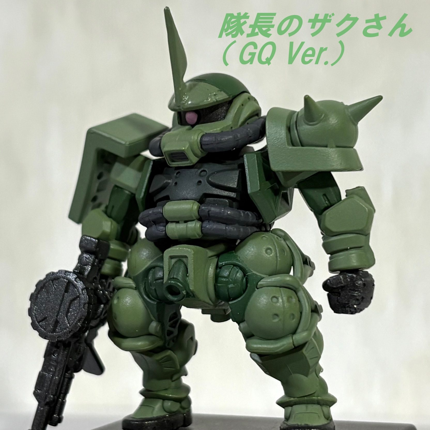 SDガンダム熱が再燃している小生は先月コンバージで発売したばかりのGQ版のザクに角を付けて「隊長のザクさん(GQVer.)」にしてみた。