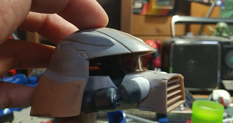 ヘルメット部はザクヘッドの上部とドムヘッドの裾部をつなぎ合わせました。