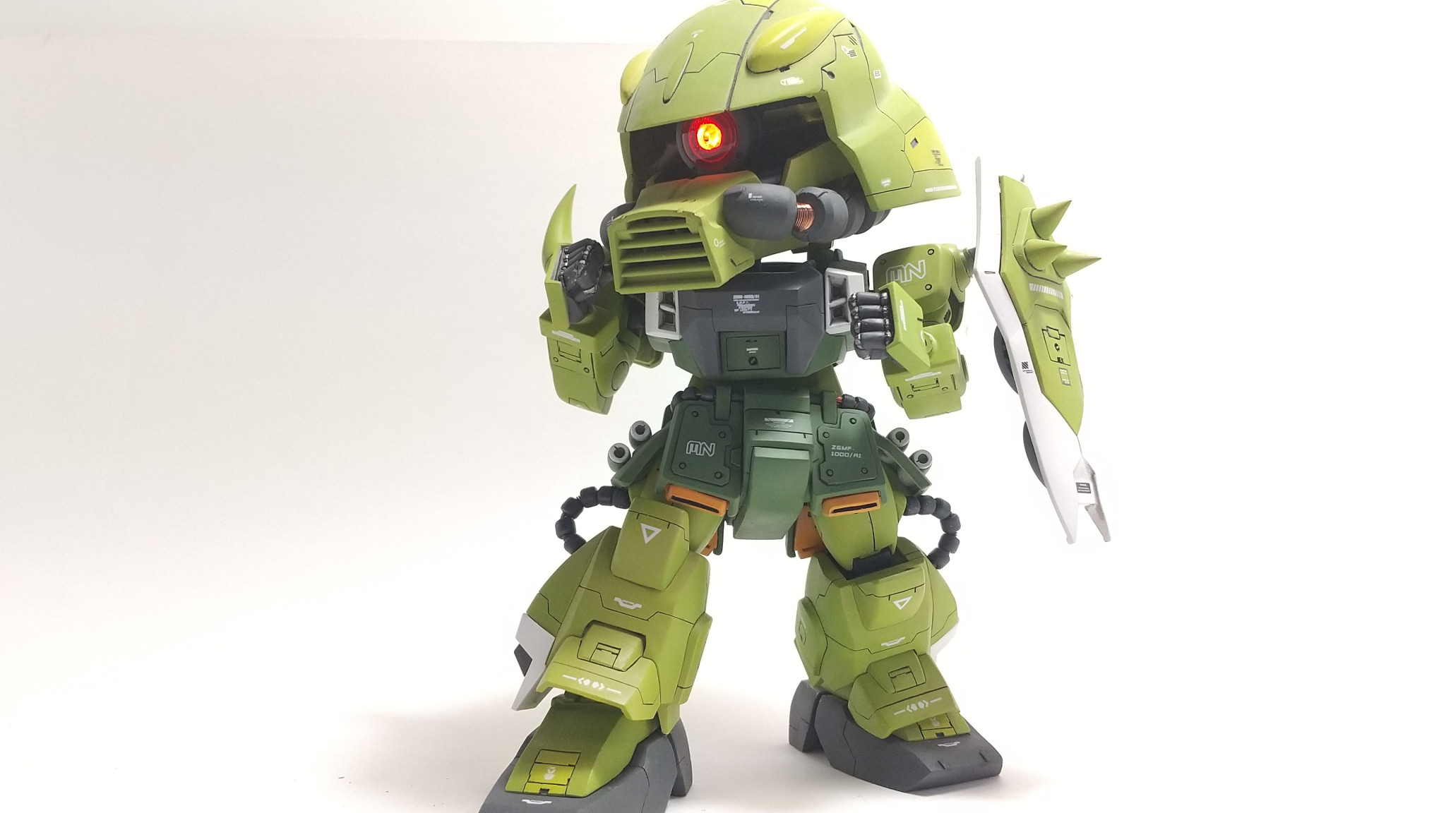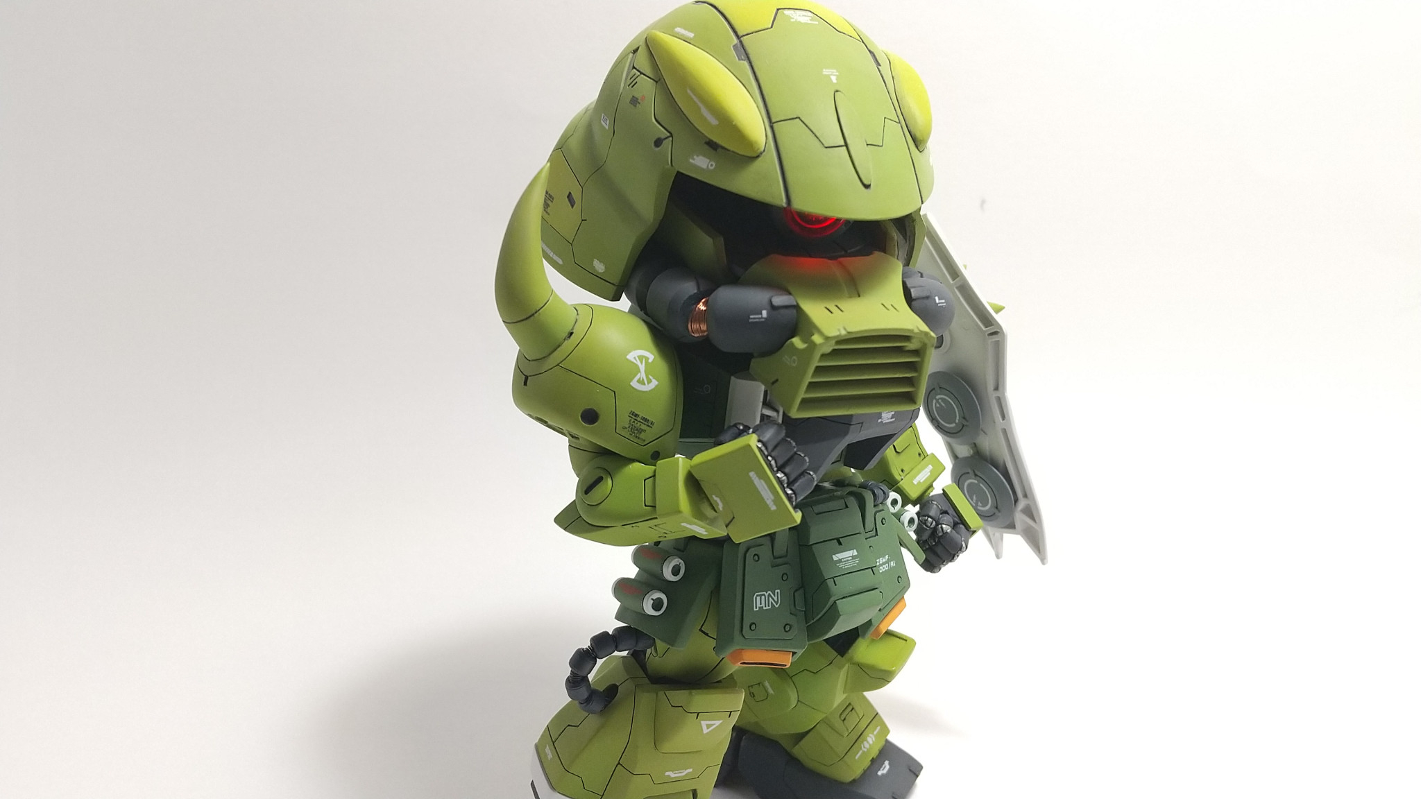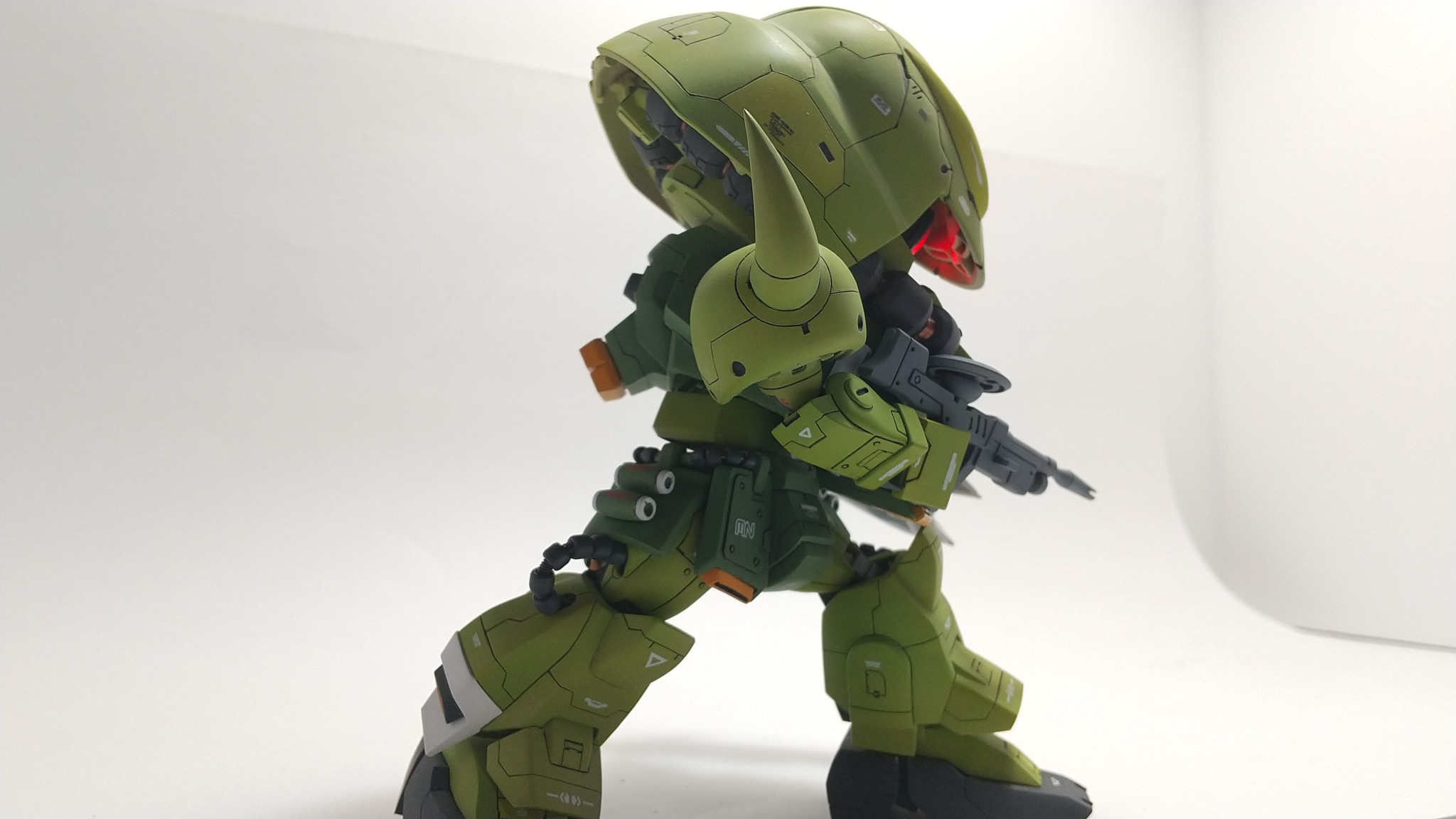エクシードモデルのザクヘッド、ドムヘッドをミキシングしてザクウォーリアヘッドを作成。HGザクウォーリアのボディー部を幅広・短縮改造して超SDザクウォーリアを作成しました!詳細はyoutubeをご覧ください→