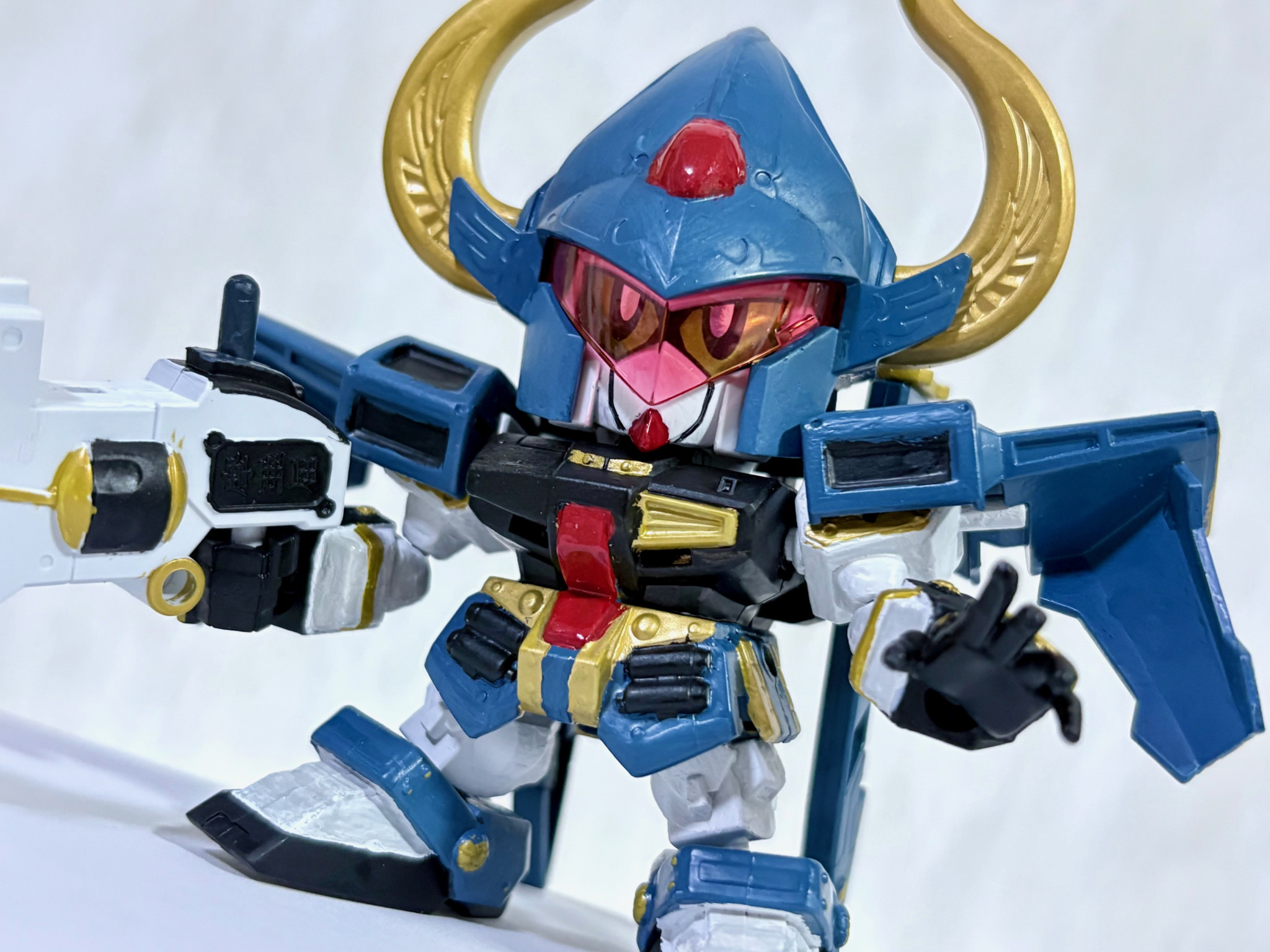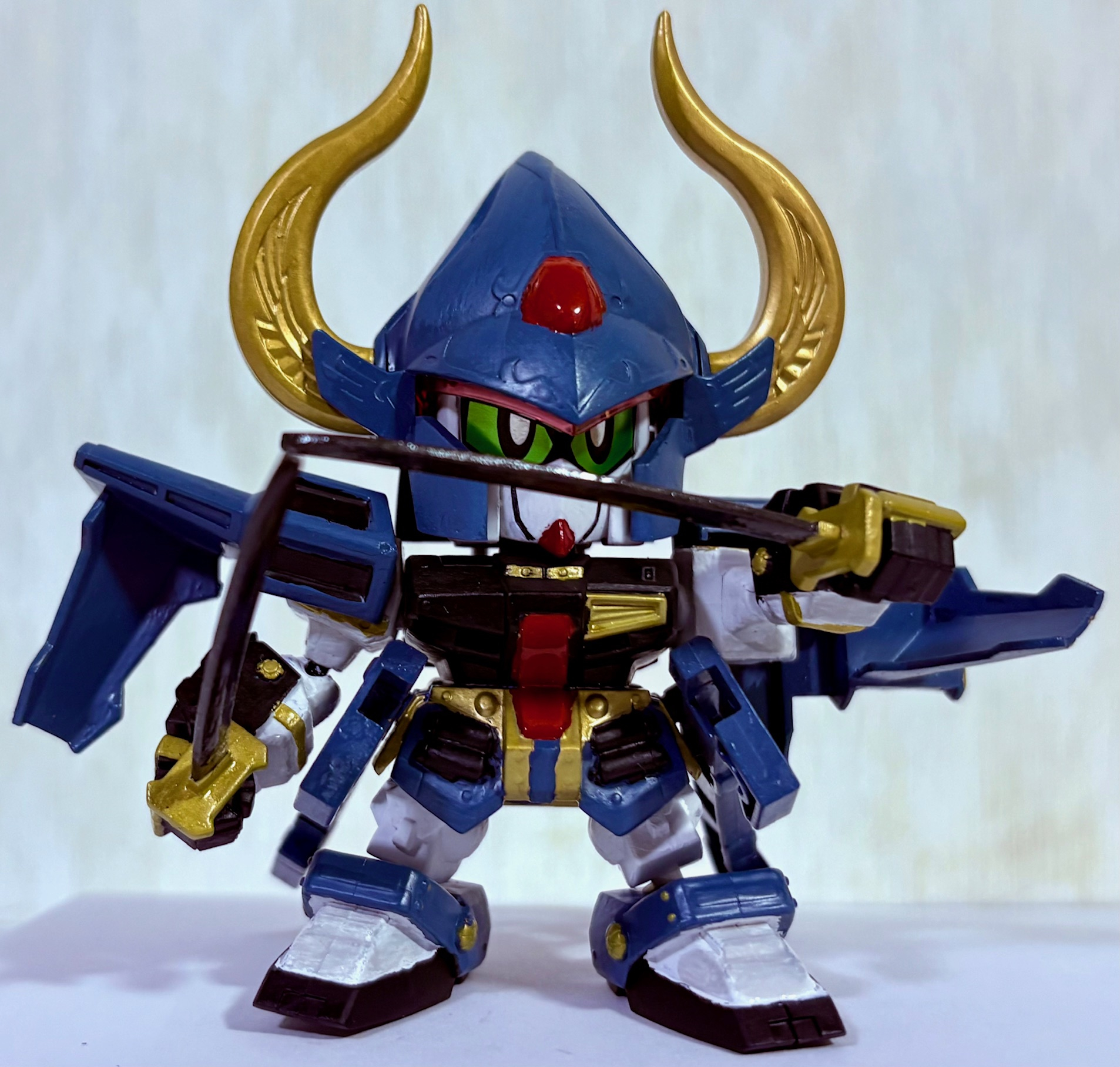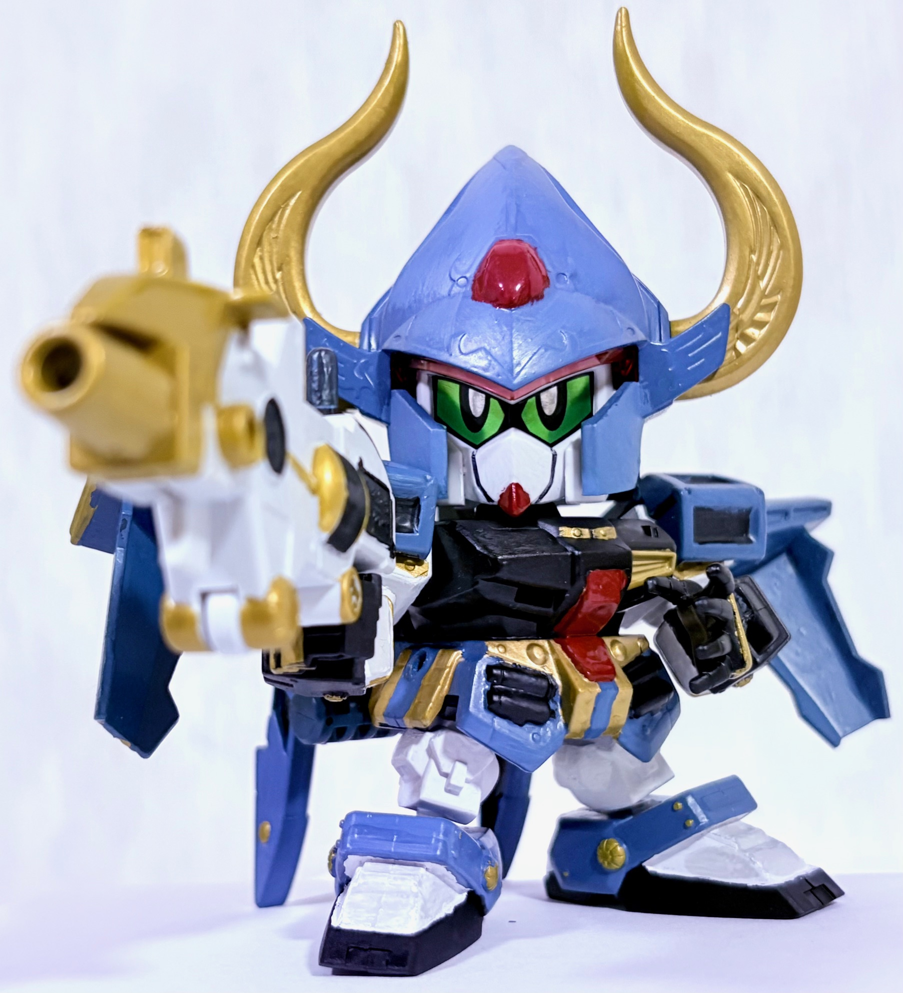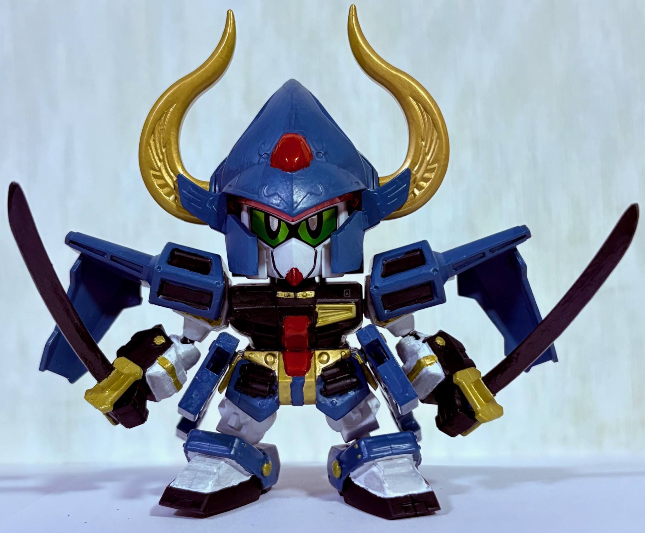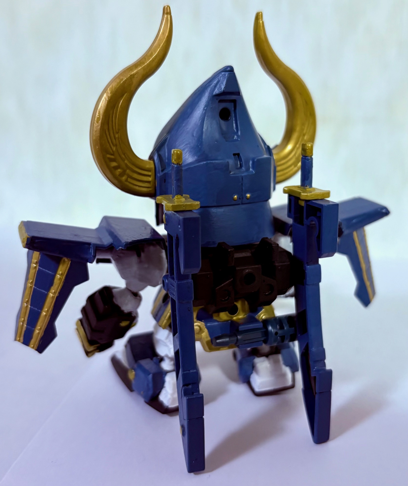 兜、鎧はミスターカラー(アクリル系塗料)のミディアムブルー、角や刀の鞘等はゴールドにイエローを混ぜて塗装した。