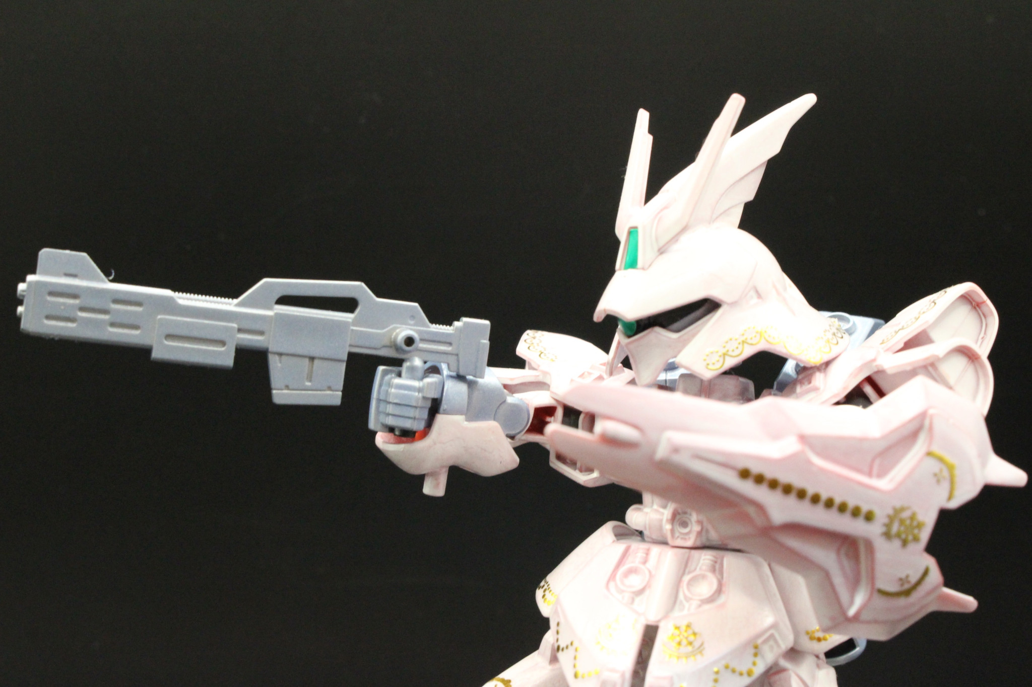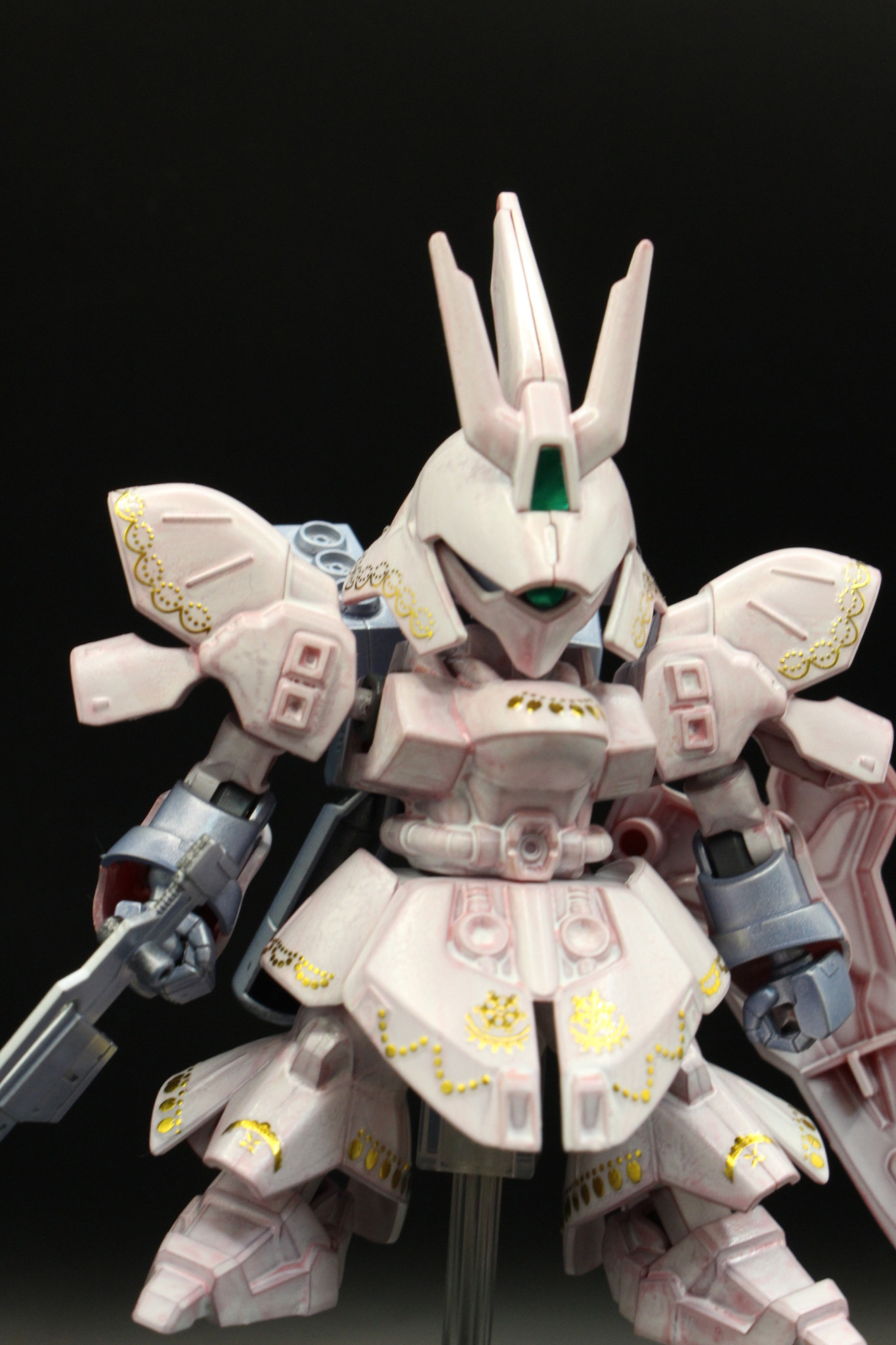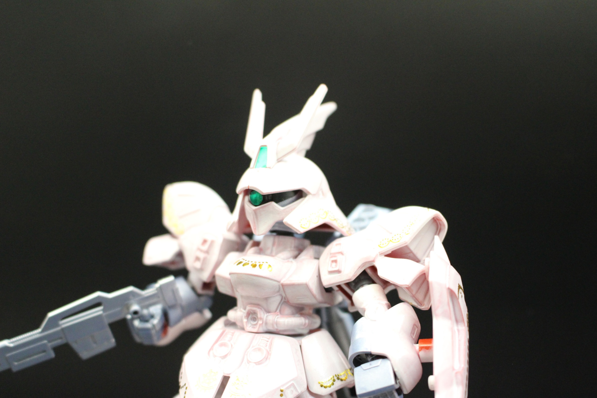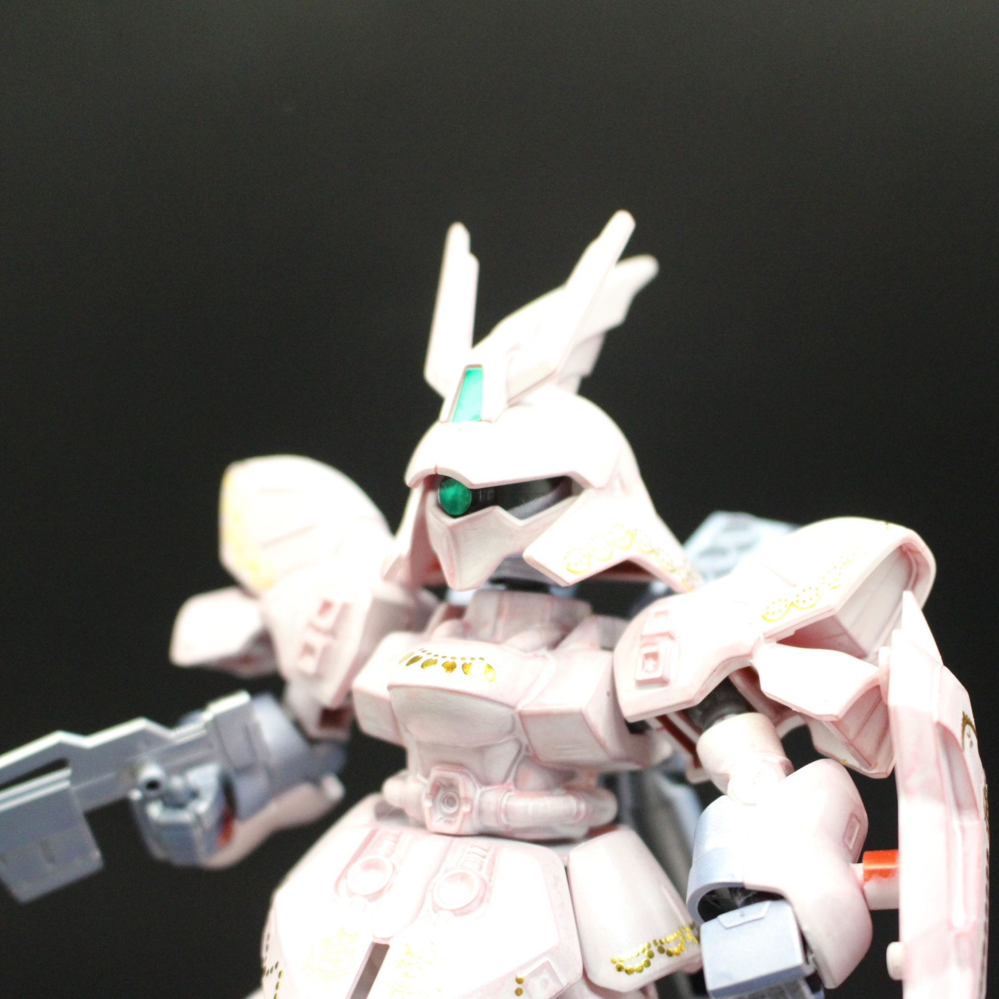 全体的に、赤のベースに直接ホワイトを塗装して、少し成形色が透けてピンクっぽくなってます。あえて塗むらを作ってます。