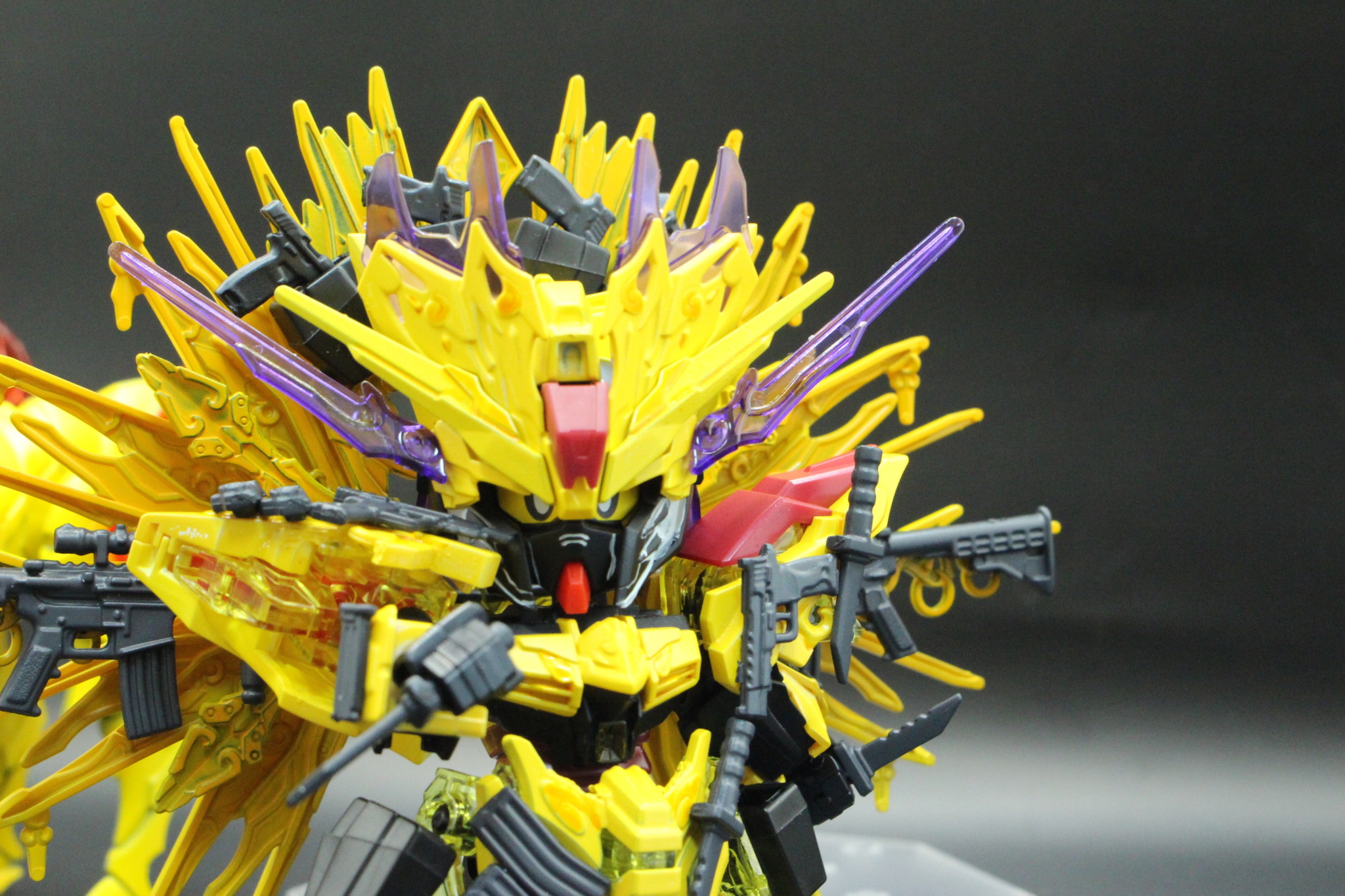 素体は「窮奇ストライクフリーダムガンダム」。これを選んだきっかけは、ご本人が配信で「SDを初めて買ってみた!」と言ってたのがこの窮奇ストフリ。ゴールドの部分をメンバーカラーのイエローにしてみようと着手しました。