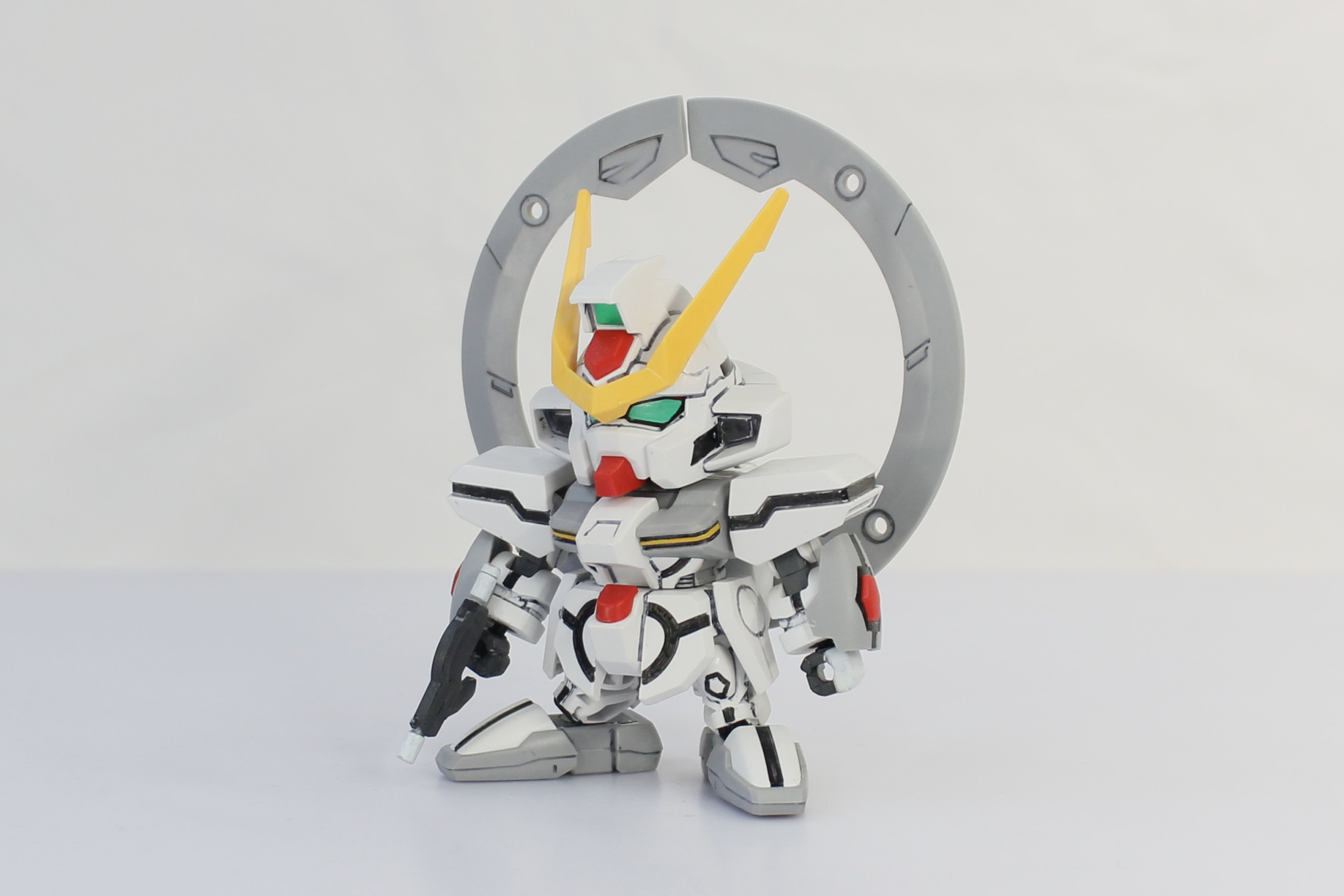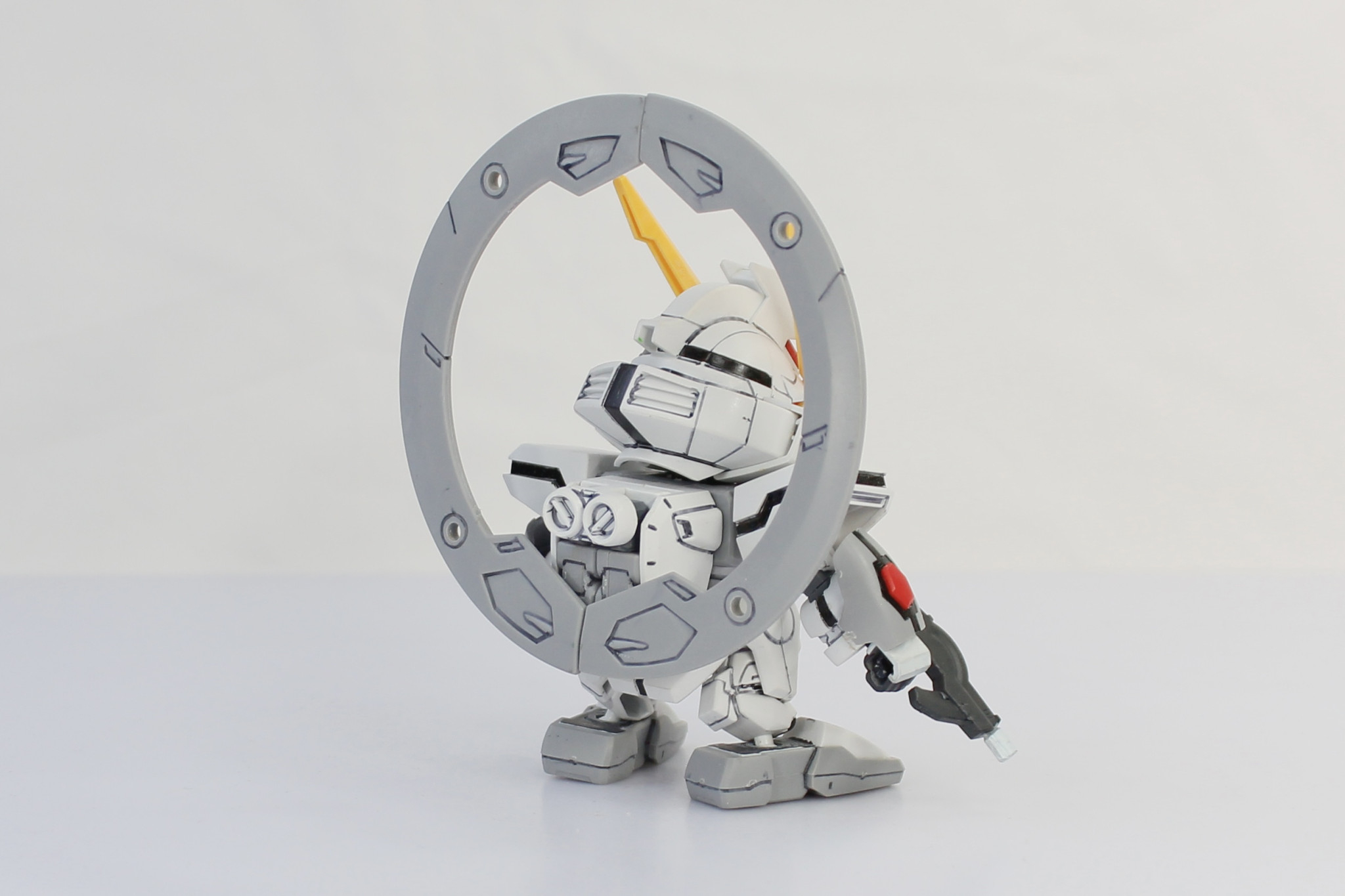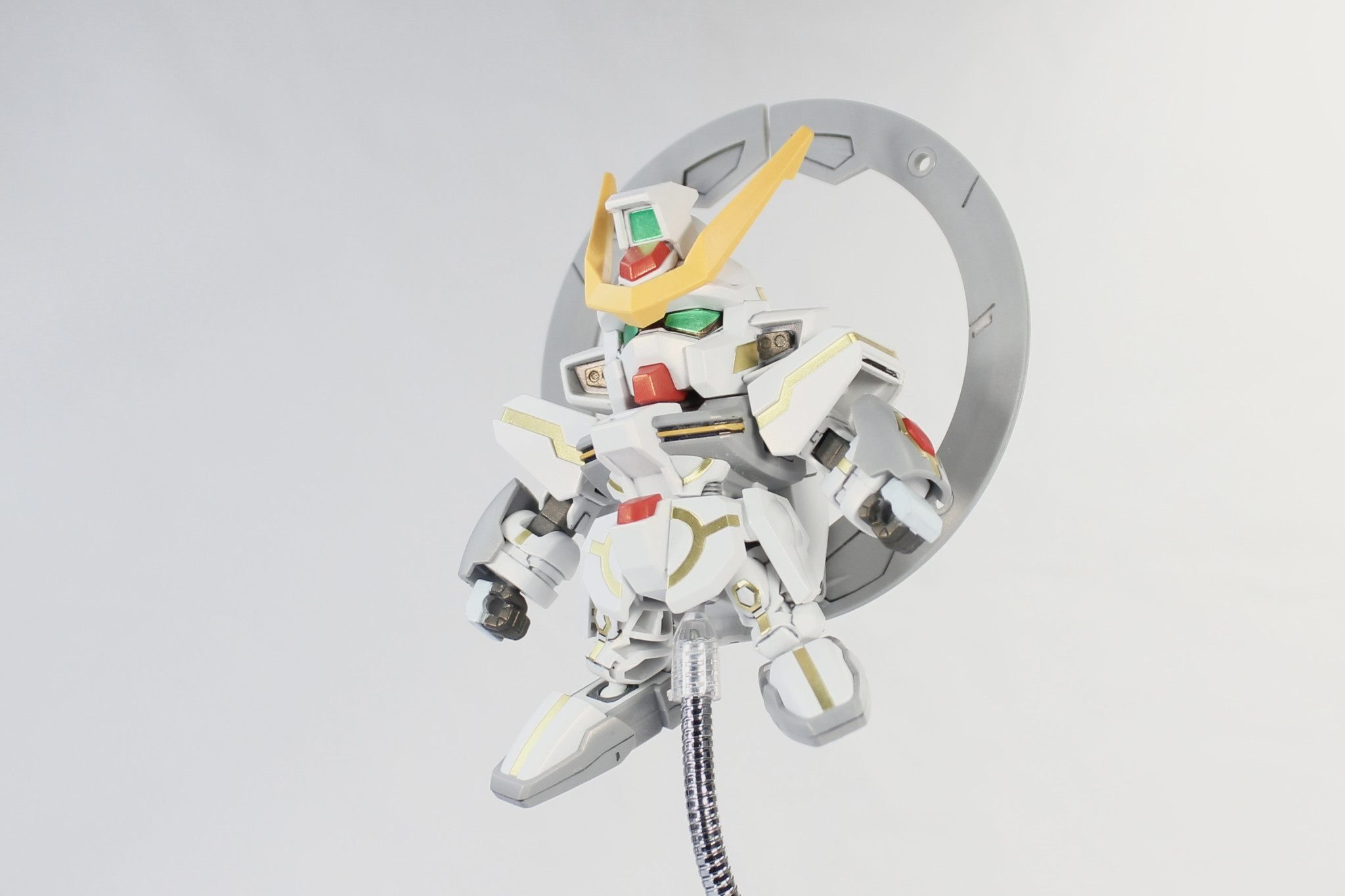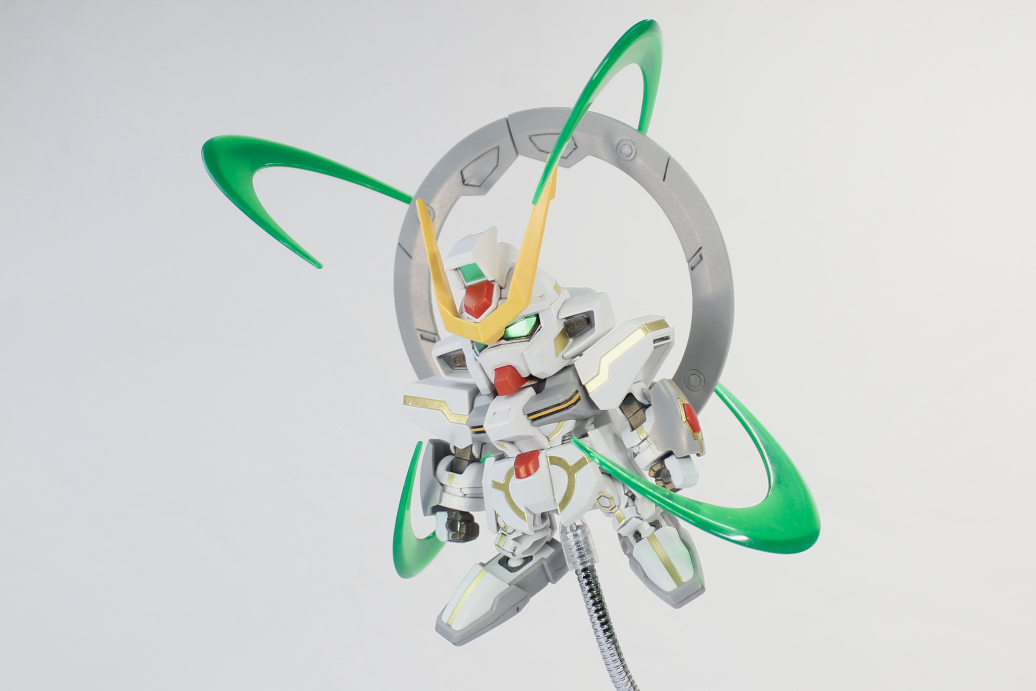 VLシステムの稼働状況に応じて、2体のBB戦士スターゲイザーガンダムを製作した。VLシステム稼働中の1体には付属の金色デカールを貼り、全体にパールゴールドを吹き付けています。