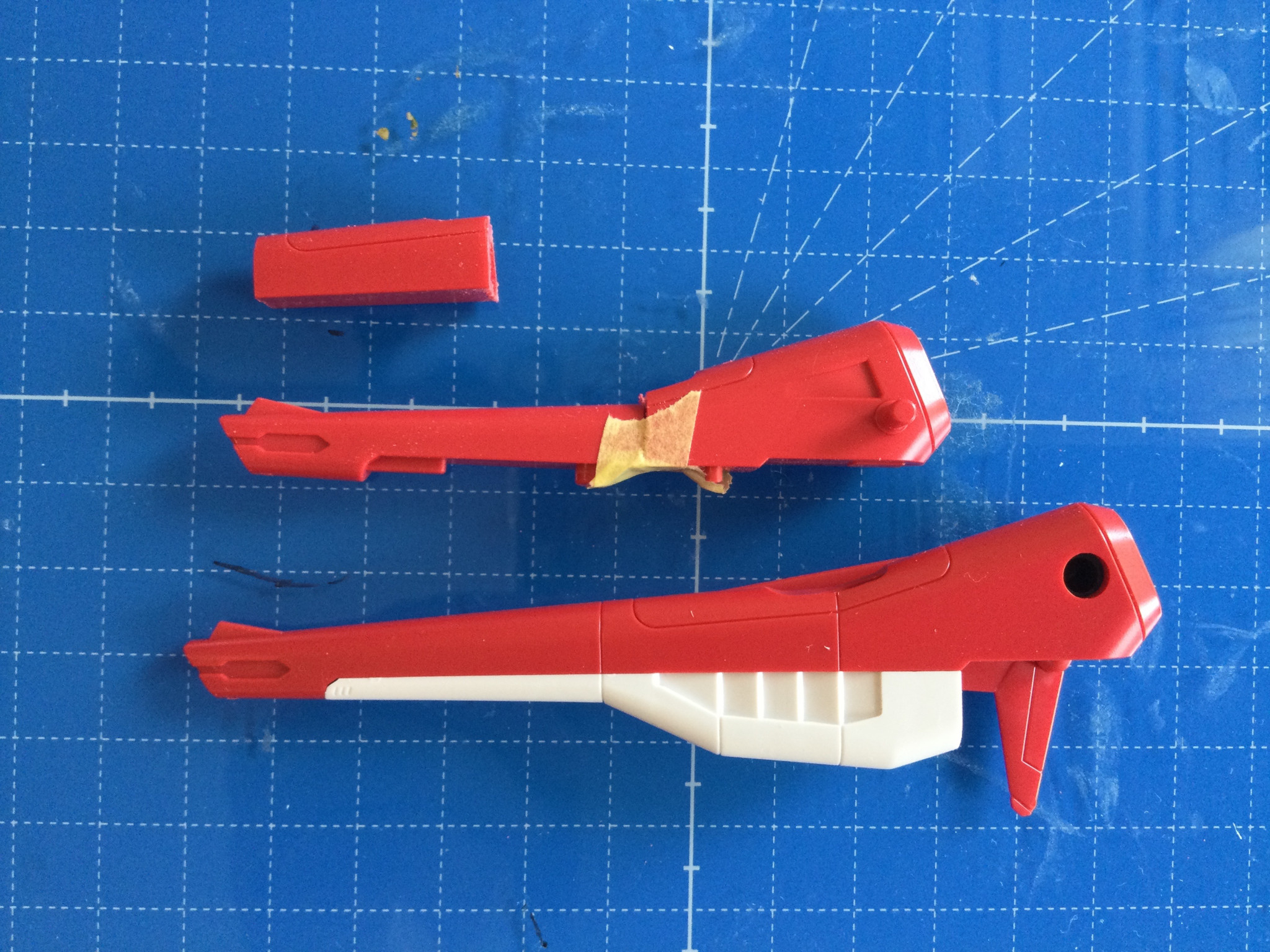 背中のプラズマ収束ビーム砲は「セイヴァー」つながりのHGセイバーガンダムから拝借。初めて短縮加工をしてみました。