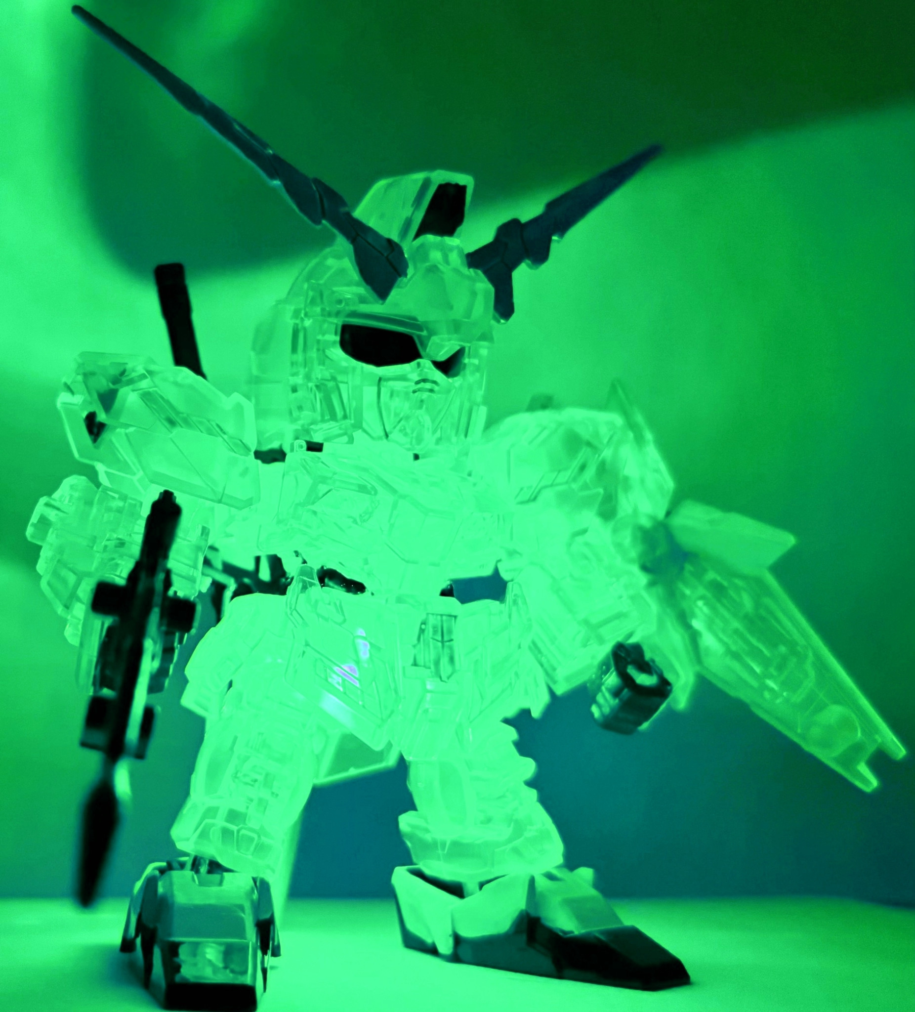 全身クリアパーツのガンプラを組み立てたのは武者○伝のコミックボンボン誌上限定キットの「堕悪魔刃頑駄無」以来かな。