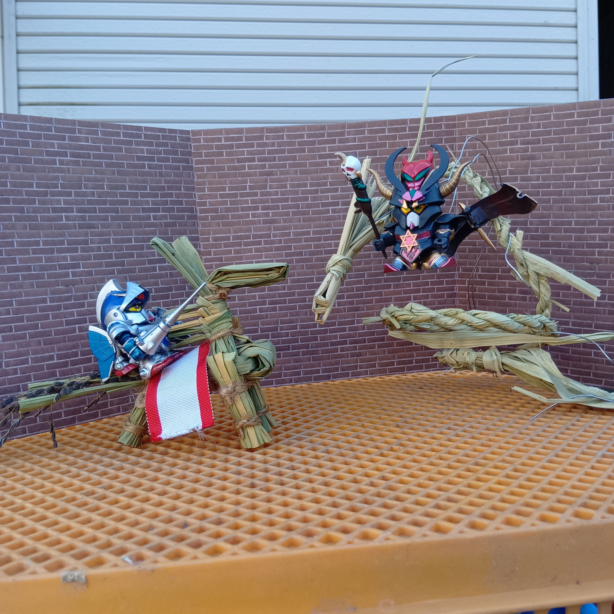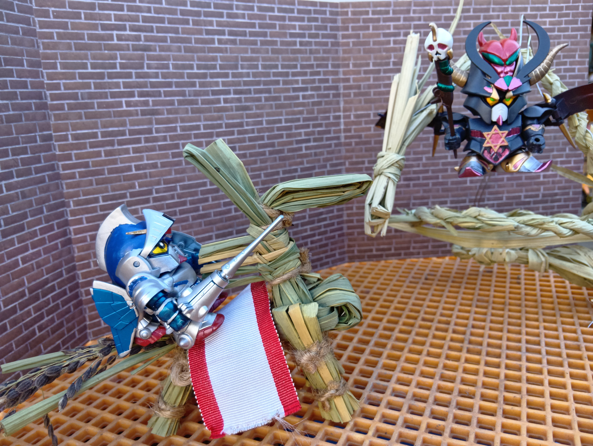 okfarm SD 2025.12/28更新 干支の引継ぎ式 (辰⇒午) 間違えた💦 40 21 いいねしたモデラー(21) 0 0 作品を共有 今年の正月の藁細工と、来年の藁細工で干支の引継ぎ式を行いました!今年の藁細工から、勝手に辰をイメージしてブラックドラゴンガンダムと、来年午年なんでナイトガンダムをコラボさせてみたけど、よくよく考えると、辰🐉ではなく巳🐍でした💦とりあえず、笑ってやってください😅 こんなところで撮影してます。本当に龍がいたら、このくらいの体格差かな?って図💨 ナイトガンダム ブラックドラゴンガンダム サタンガンダム SDガンダム SD SDガンダム外伝 干支 コメント コメントをして応援しよう コメントにはログインが必要です okfarm 小学校高学年~中学生の頃にガンプラにハマってましたが、高校になって部活に夢中でいつの間にかやめてました。 それから30年、7歳の息子をTV漬けから抜け出させるために買ってきたガンプラくんやSDガンダムのおかげで自分までガンプラ熱が再燃🔥 親子でガンプラ作成を楽しんでます✨ 兵庫県の福崎町民です。ご近所さんおるかな? 5 アプサラスⅢ Gジェネおまけ Gジェネのおまけ、アプサラスⅢです。パーツはボディ上部・下部… 15 アプサラくんⅢ ザクプラくんバリエーション とうとうやってしまった、アプサラスⅢのザクプラくんバリエーシ… 4 BB戦士 時恩国雑兵隊 雑魚 雑魚三人衆。右から・黒い古雑魚・赤い斜雑魚・緑の雑魚 10 BB戦士 頑駄無国雑兵隊 足軽璽武(ジム) 足軽ジムと暴留隊。 武神降臨編の武将たちに付いていた暴留と、… okfarmさんのページ この作品をお薦め作品に設定する Please login to update your profile! Please login to update your profile! Please login to update your profile! Please login to update your profile!