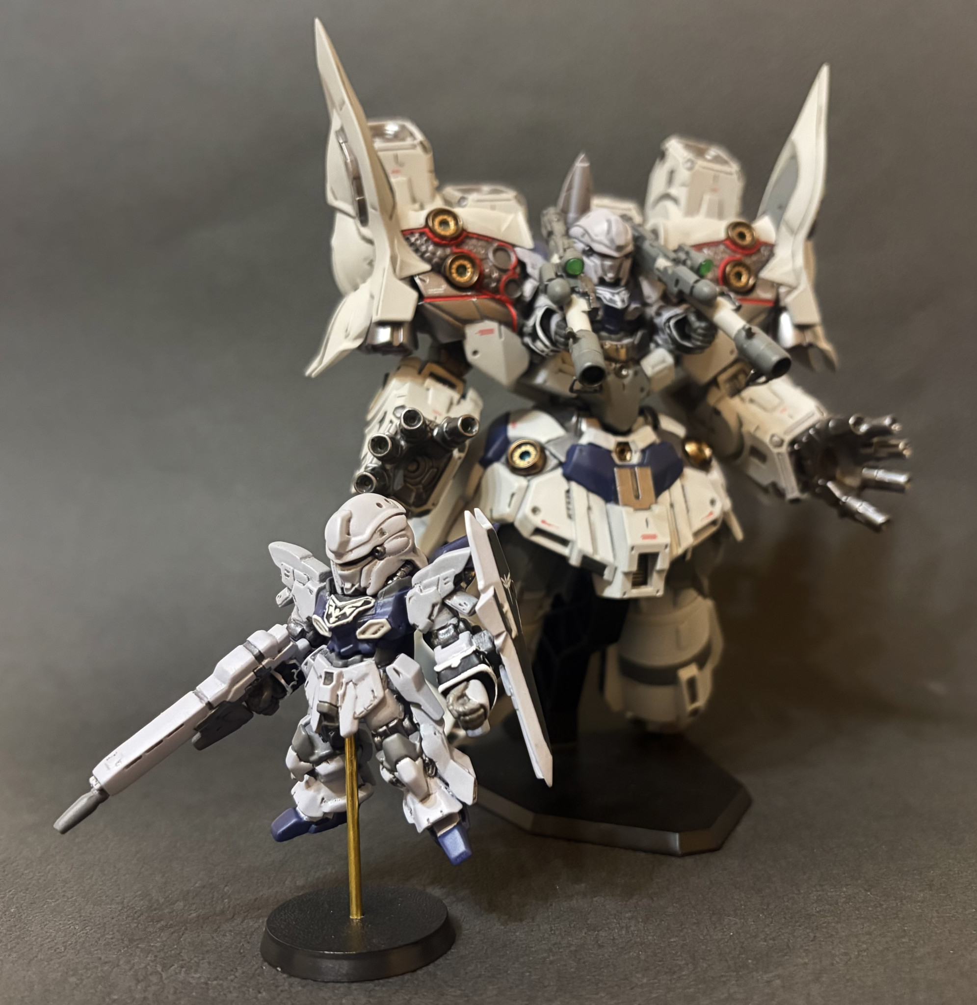いしゅと【I.S.… SD 2026.01/12更新 コンバージシナンジュ・スタイン 24 22 いいねしたモデラー(22) 0 0 作品を共有 コンバージ、シナンジュ・スタイン改造。 全体的に良い出来なので、改造箇所は最小限、下半身のボリュームアップが中心。 他は、細々と微調整。 各部改造前と比較セカンドネオジオングとパージ下半身ボリュームアップと腕角度変更、浮遊状態に シナンジュ・スタイン 機動戦士ガンダムNT コンバージ ガンダムコンバージ モビルスーツアンサンブル コメント コメントをして応援しよう コメントにはログインが必要です いしゅと【I.S.T.works】 ガンダムコンバージの改造を中心にやってます いしゅと【I.S.T.works】さんがお薦めする作品 コンバージ レッド・ウェイライン専用高機動型ゲルググ ガンダムコンバージ風 αアジール ガンダムコンバージ ゴーストガンダム 17 コンバージ セカンド・ネオジオング コンバージセカンドネオジオング。 シャンブロに続き大型機。 … 17 コンバージ シャンブロ コンバージ、シャンブロ改造。 頭部、首、肩、クロー、脚部とほ… 17 コンバージ風 ウォドム バンプレストのプライズからコンバージ風に加工。 腕をHGBD… 17 スペリオルディファイン改造 ウイングガンダムゼロ スノーホワ… 新食玩シリーズ、スペリオルディファインのウイングガンダムゼロ… いしゅと【I.S.…さんのページ この作品をお薦め作品に設定する Please login to update your profile! Please login to update your profile! Please login to update your profile! Please login to update your profile!