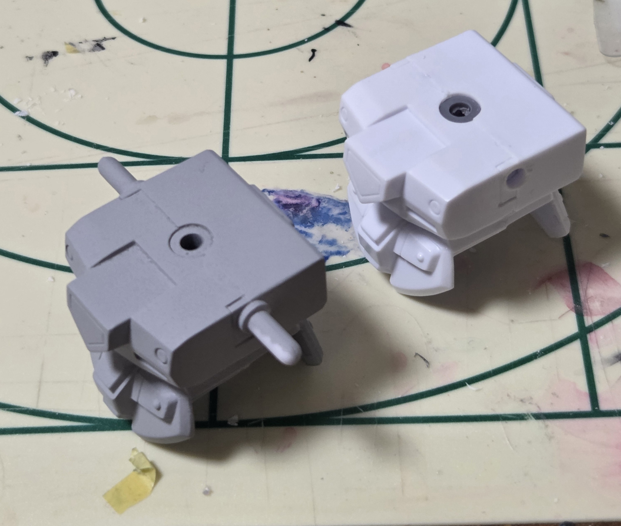 今回の改造ポイントとして、いつもの肘の稼働化と、肩パーツが嵌め込み式だったので切り落として肩パーツ側から差し込む形にしてます。ただ、あんま違いはなかったですね。また、肩鎧の丸いパーツを2.8ミリのHアイズにしています。