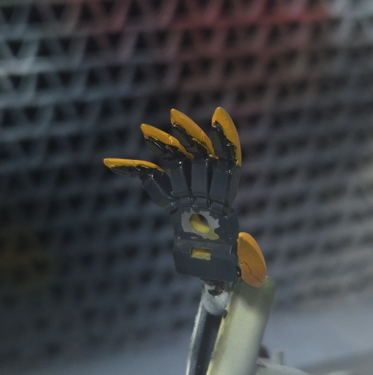 とくに指のパーツは黄色一色だったので、筆とマーカーとエナメル墨入れとドライブラシと…。とにかく手を尽くして誤魔化しました…