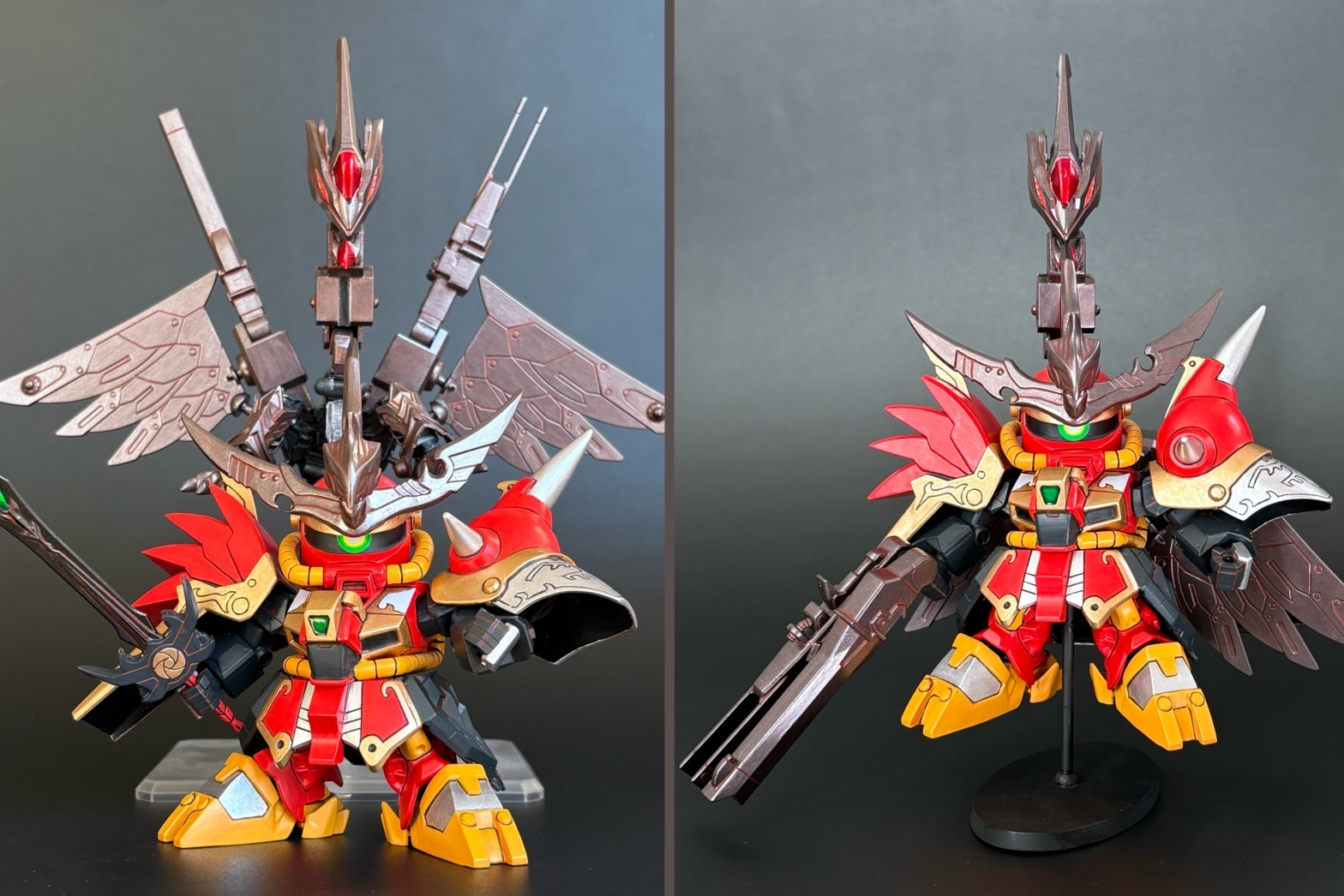 みやま SD 2026.01/17更新 魔殺駆 32 45 いいねしたモデラー(45) 0 1 作品を共有 みやまワールドNo.79 魔殺駆をLGBB体型で作りました →頑駄無軍団は俺が倒す!『冥来変幻』冥来変幻の呪文で邪悪迦楼羅(エビルガルーダ)が召喚される!魔殺駆と合身し『暗黒の羽衣』となる!背面のモチーフはサイコザク邪悪迦楼羅(エビルガルーダ)クスィーの腕、Hi-νの下半身を使いLGBB体型に寄せています魔殺駆の胸は元キットパーツを各部切断して縮めました→頑駄無を滅ぼせ!最後までご覧いただき、ありがとうございました! みやまワールド SDガンダム SD戦国伝 レジェンドBB BB戦士 魔殺駆 コメント コメントをして応援しよう コメントにはログインが必要です みやま SD好き。 武者,騎士,コマンド等の風味を足すのが好き。 楽しんでもらえたら嬉しいです。 みやまさんがお薦めする作品 紅武者&将頑駄無 天の鎧炎凰 二代目 将頑駄無 女足(メタス) 9 呪術師遮光&超呪導武者クラヤミ みやまワールドNo.78 呪術師遮光&超呪導武者クラ… 12 強化武具セット② みやまワールドNo.77 空想の『BB戦士 強化武具セット②… 9 ナイトガンダムコレクション みやまワールドNo.76 BB戦士43と72のナイトガンダム… 9 コマンド&ブラッディ(ミニプラカラー) みやまワールドNo.75 レジェンドBBコマンドガンダムを1… みやまさんのページ この作品をお薦め作品に設定する Please login to update your profile! Please login to update your profile! Please login to update your profile! Please login to update your profile!
