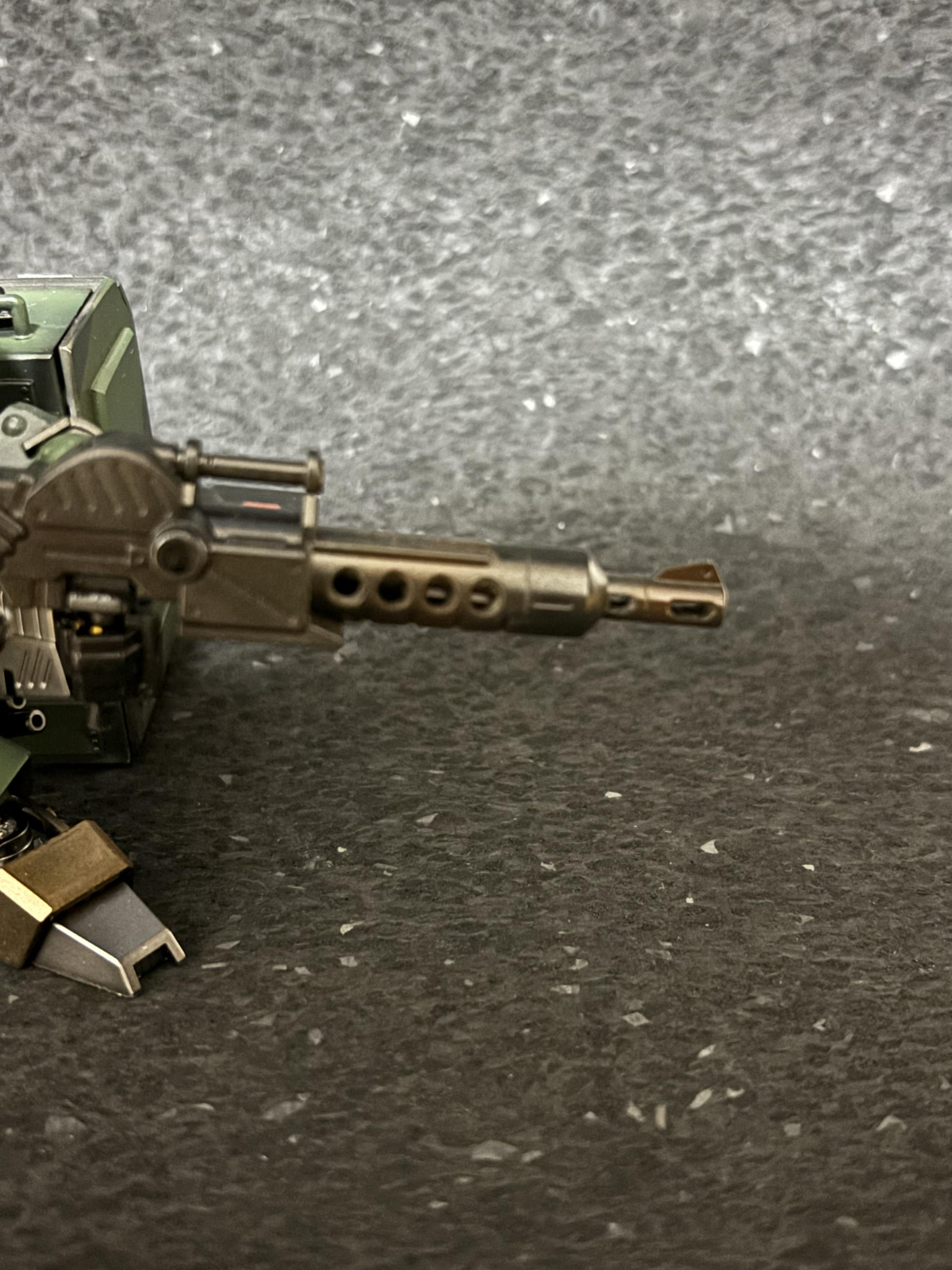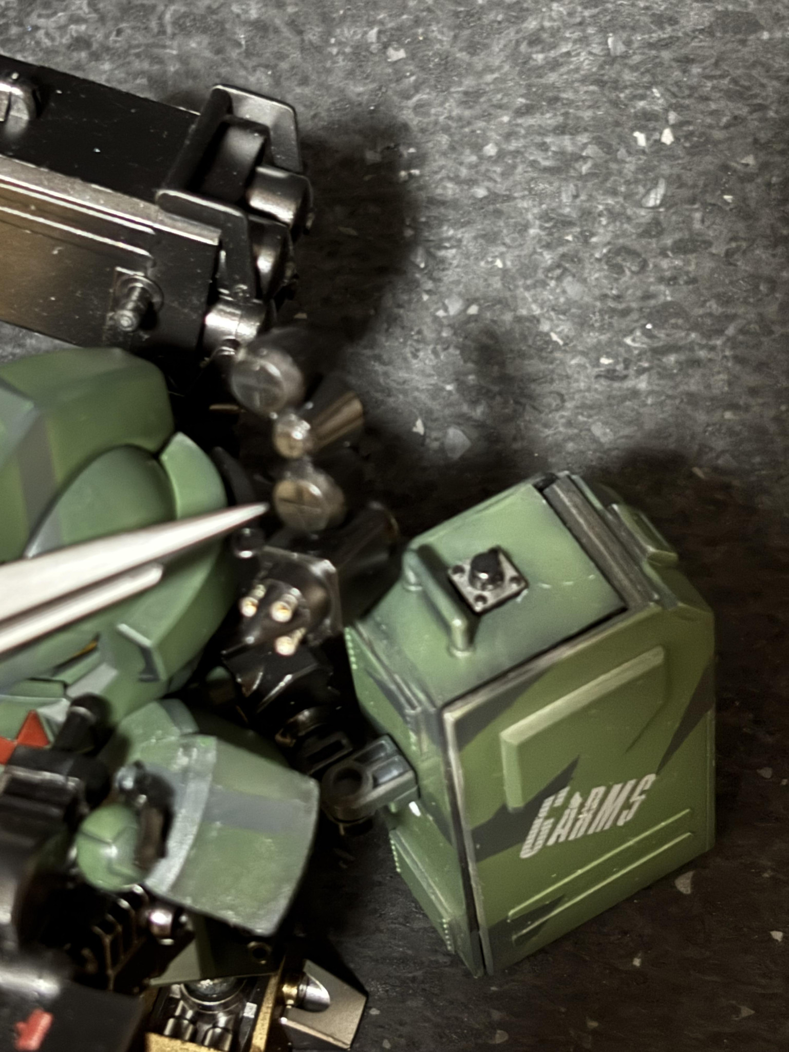 写真ではわかりにくいのですがウェポンラックのボタンを押すと頭部センサーの発光、マシンガンの音が流れます