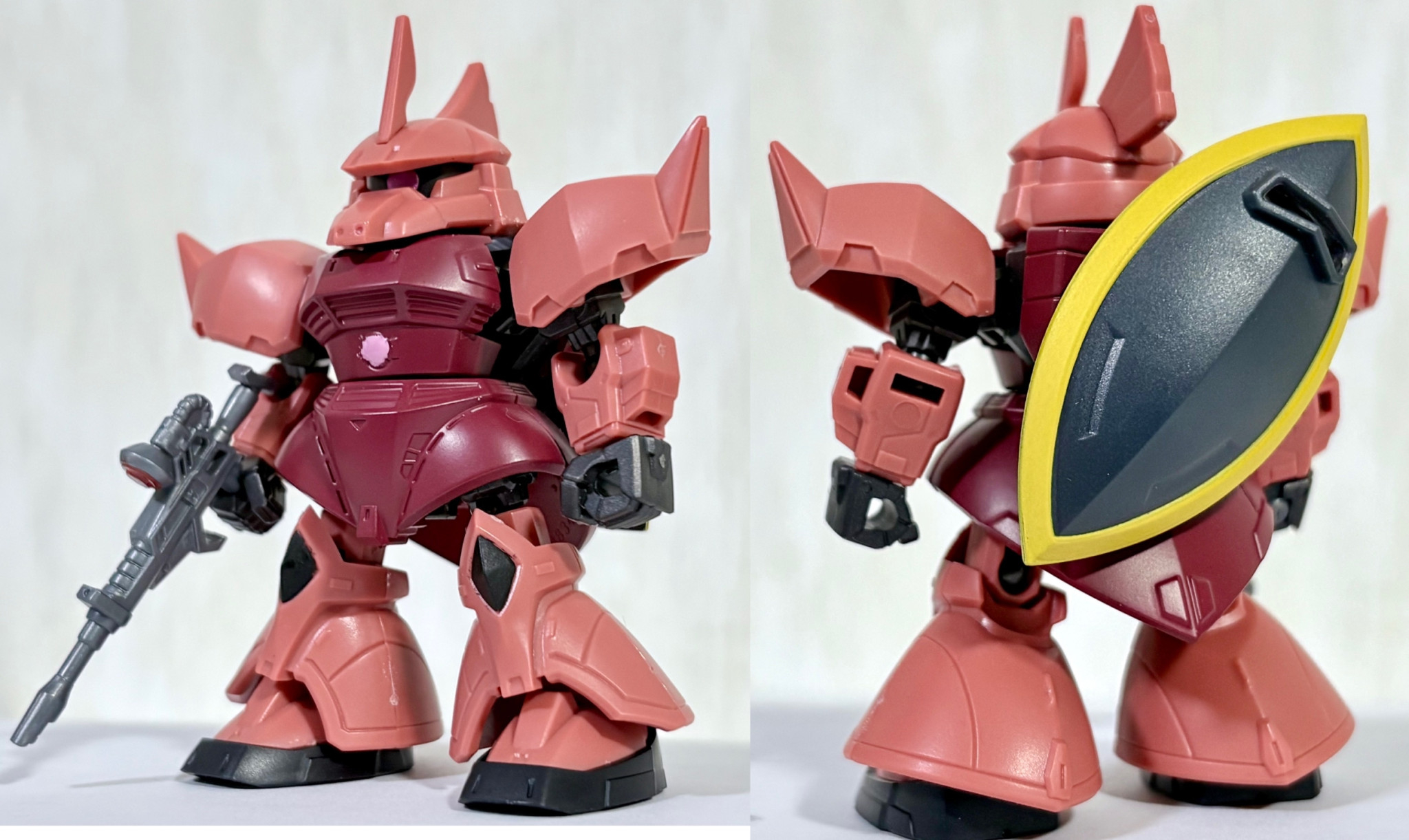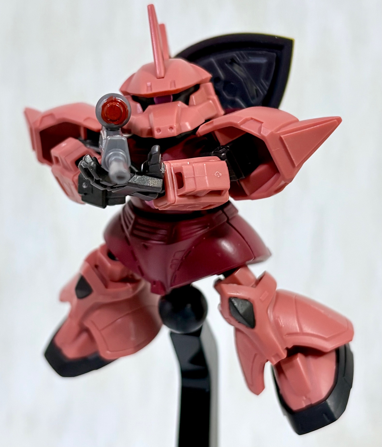 高機動型だとジョニー・ライデン仕様にしないといけないので、ストレートにシャア専用にしました(zaku-kao5)