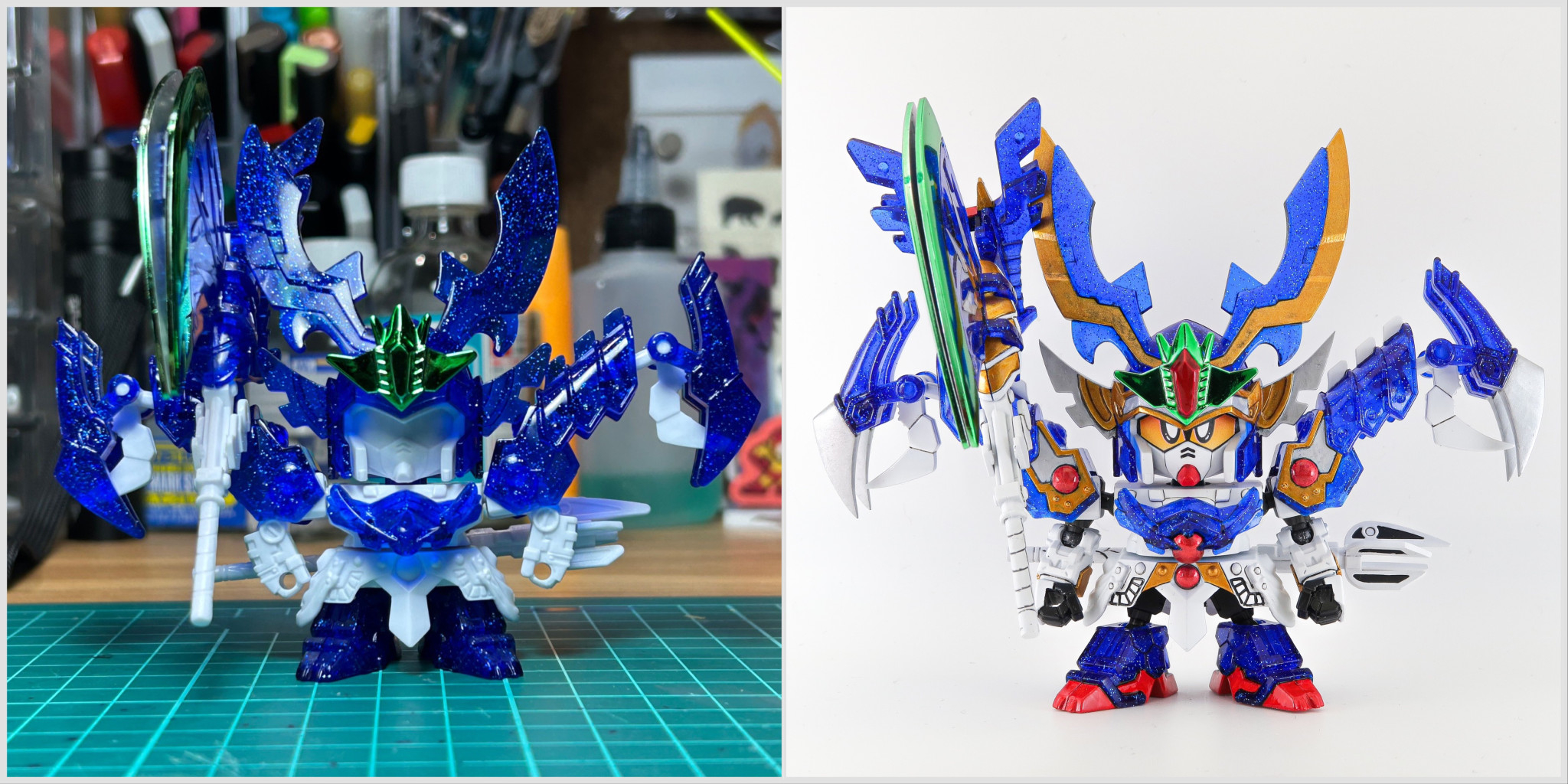 加工前後です。ボールデンと食玩のモビリティジョイントを使って関節を製作しています。(詳細はXをご覧ください)