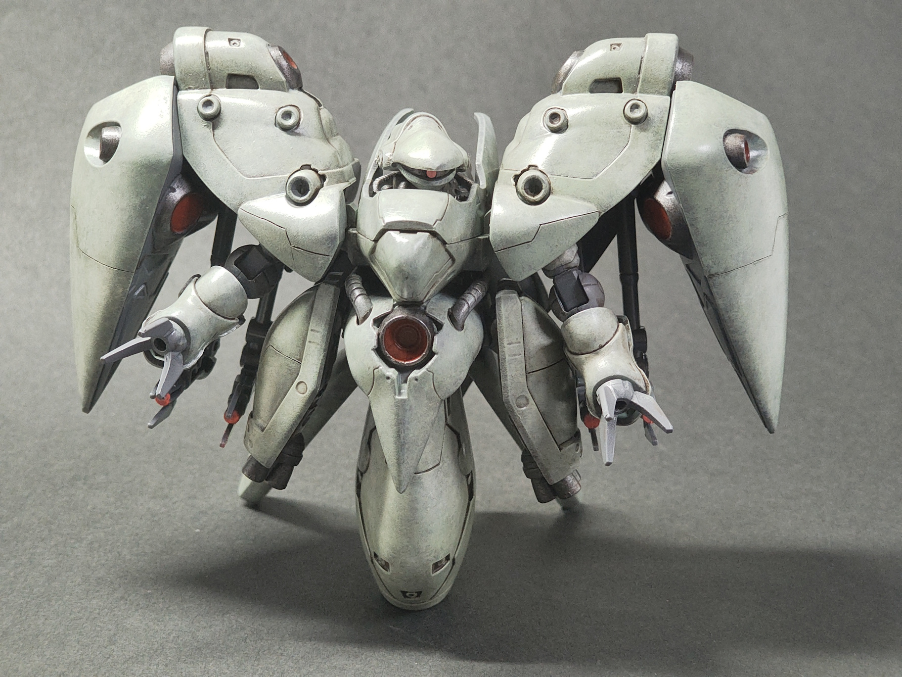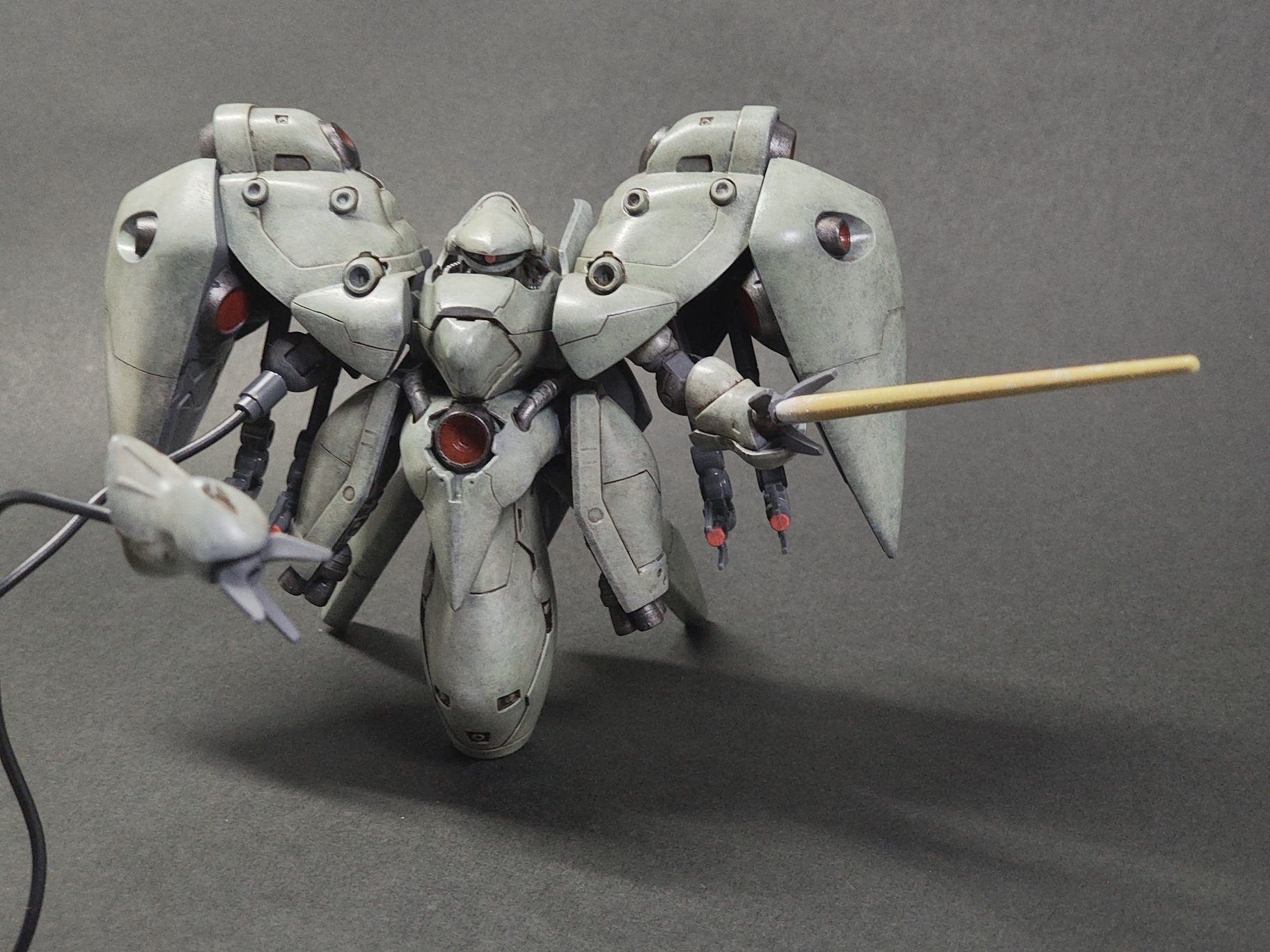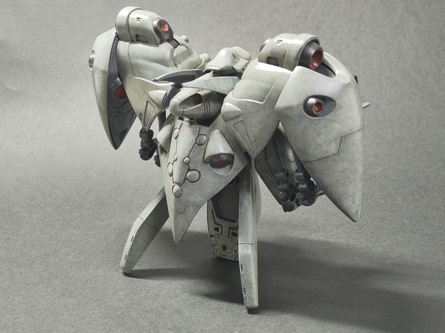 家元(清水圭さん)がPLAMAXヴェルビンの作例をHJでやったのを見て、筆自慢たちが俺も俺もって感じでヴェルビンを筆塗りしてるいのをいいなぁって見ながら、そんな感じで塗りました。ほら、なんかオーラバトラーぽいじゃないですか。知らんけど。