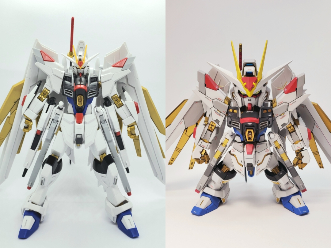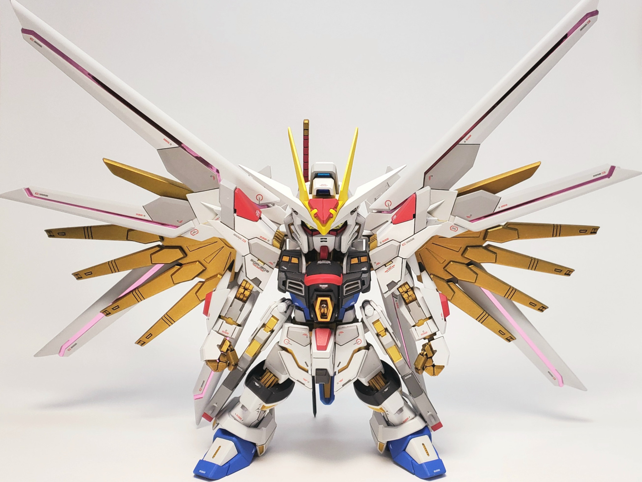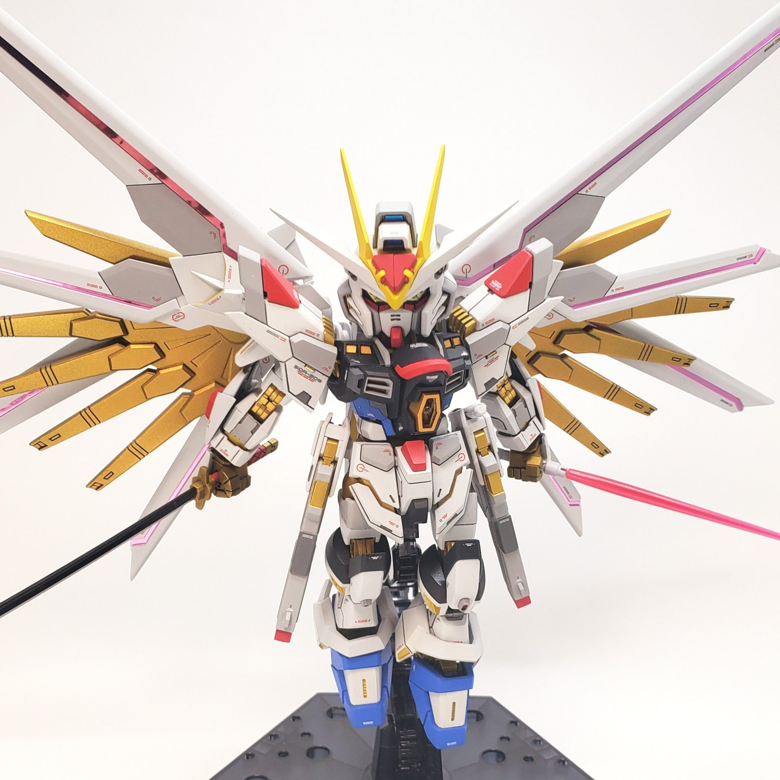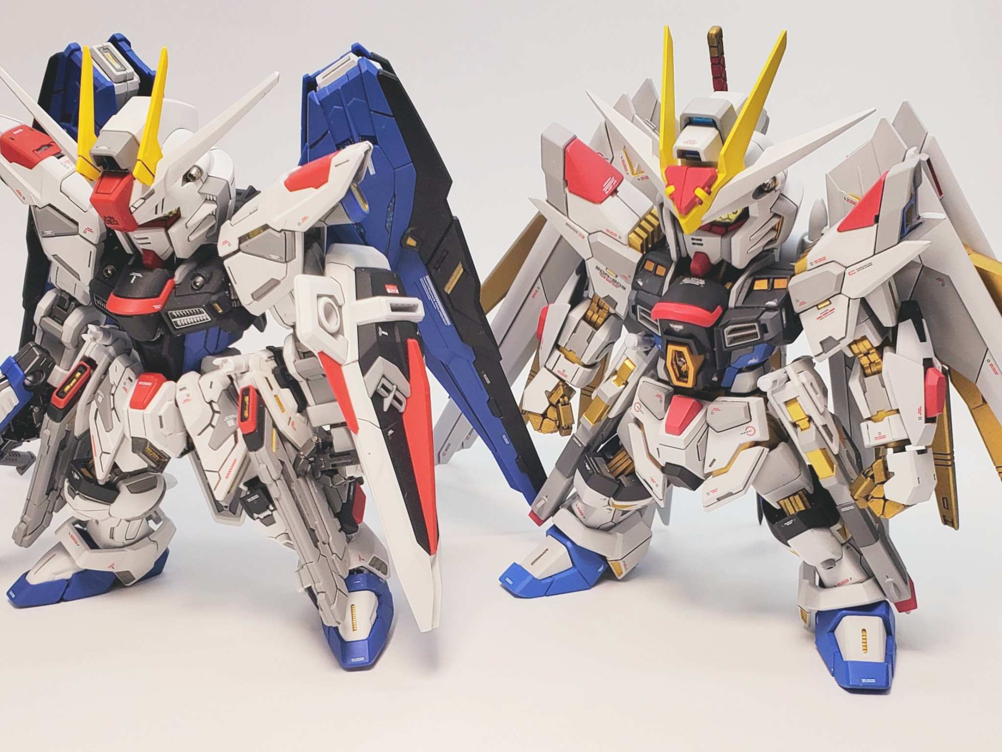 HGマイティストライクのMGSD化です。MGSDキットは一切使わず、HGとSDのみでMGSDの可動・プロポーション・ディテールを再現しました。