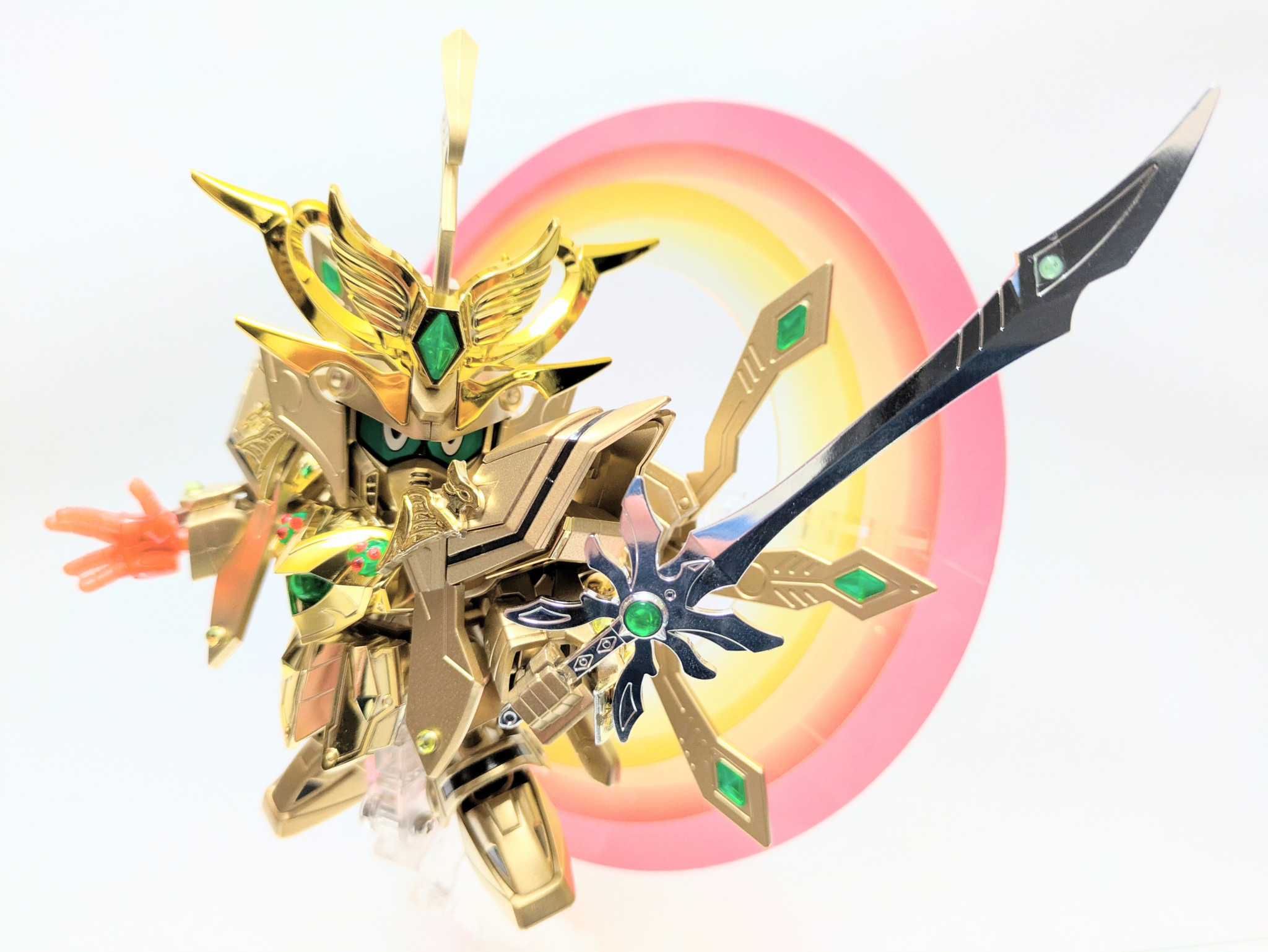 上のパワーアップした爆烈刀と熱破刀が融合し、究極の力を宿した大剣として具現化した流派東方不敗最大最強の奥義。という設定です。銀メッキの刀身がゴールドの身体に映えます。