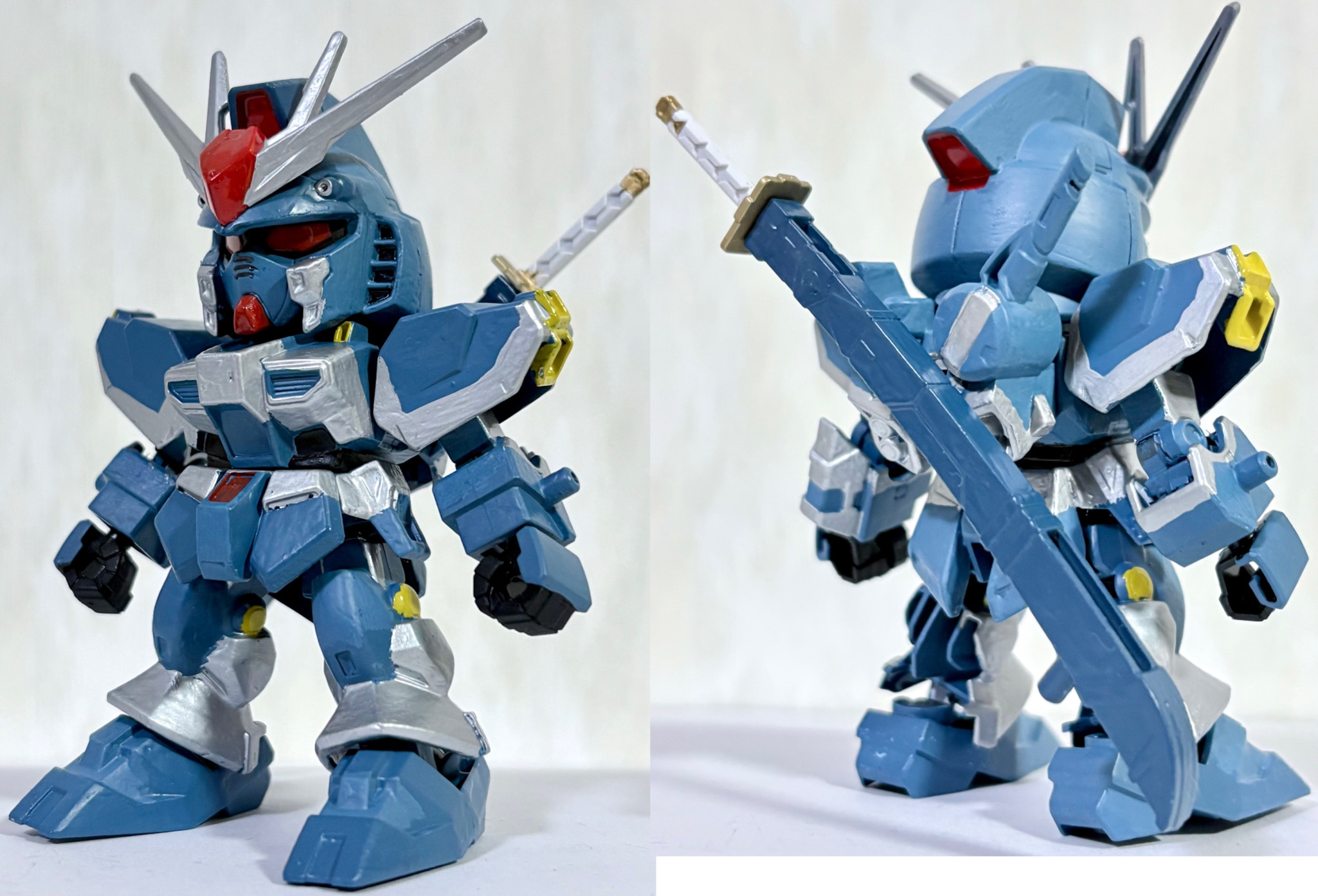 フロントビューとリアビュー。ミディアムブルーで全身を塗りつつ、シルバーとイエローでアクセントを付けた。