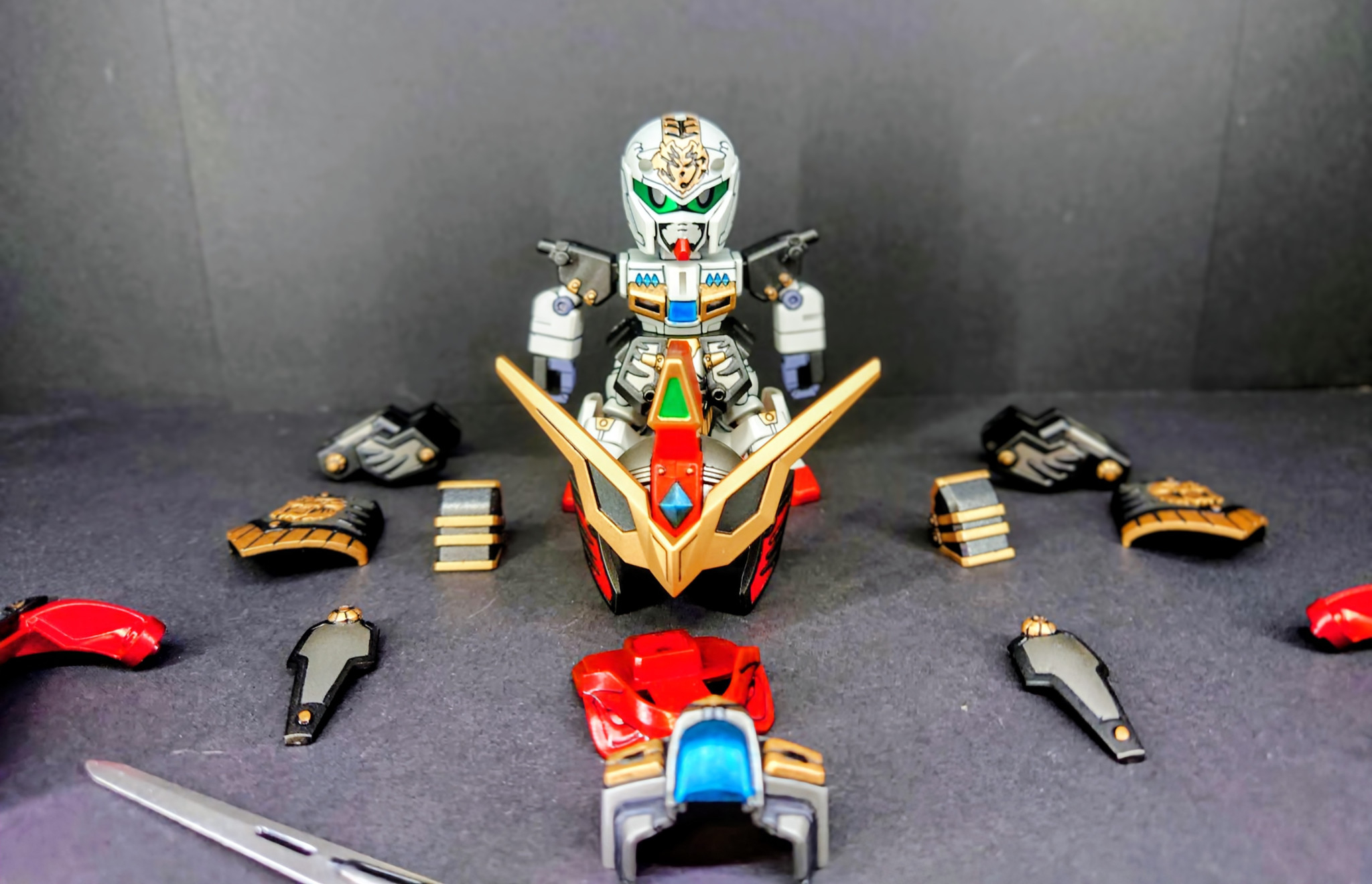 今回の孫堅は轟大帝孫権ガンダム虎燐魄のコンバーチブルキットになります。轟大帝孫権は今回は製作しておりません。また虎錠刀は孫策サイサリスに付属してるので今回は製作してません。