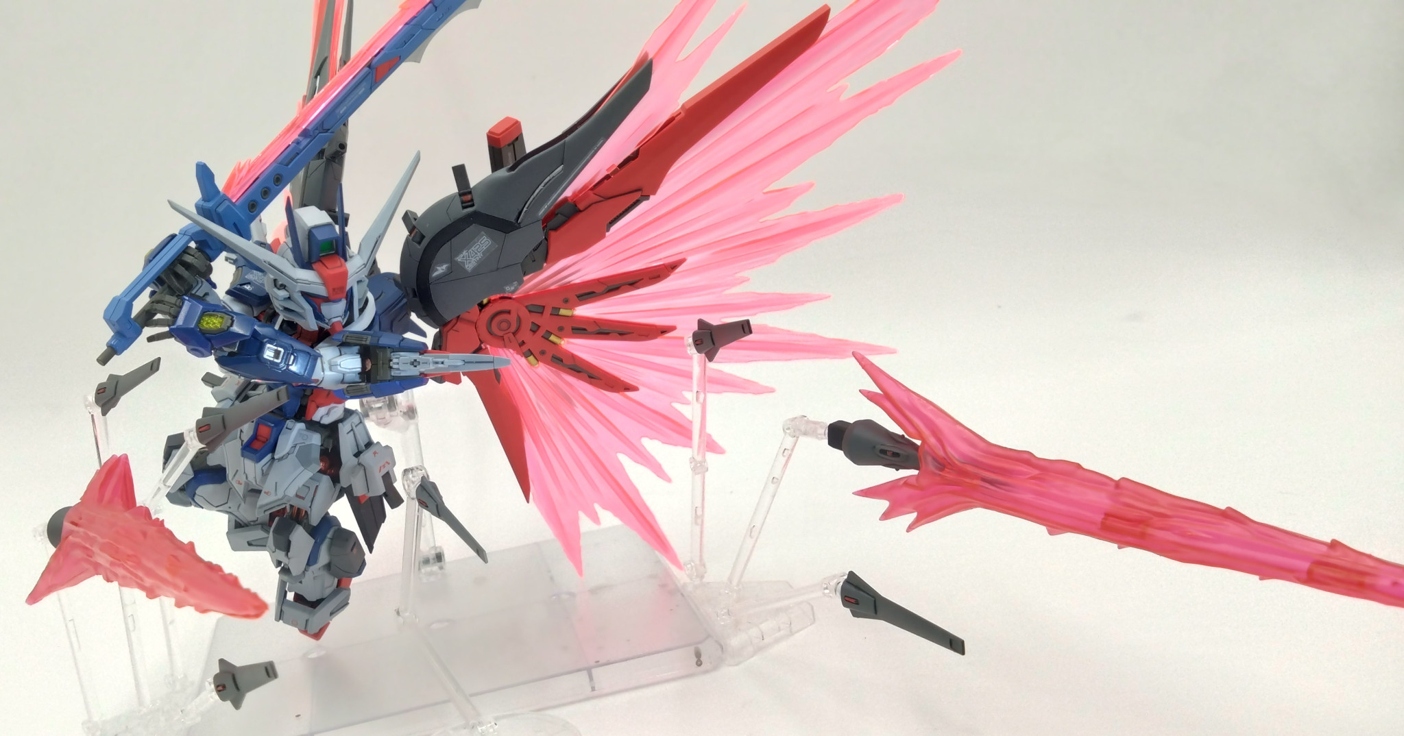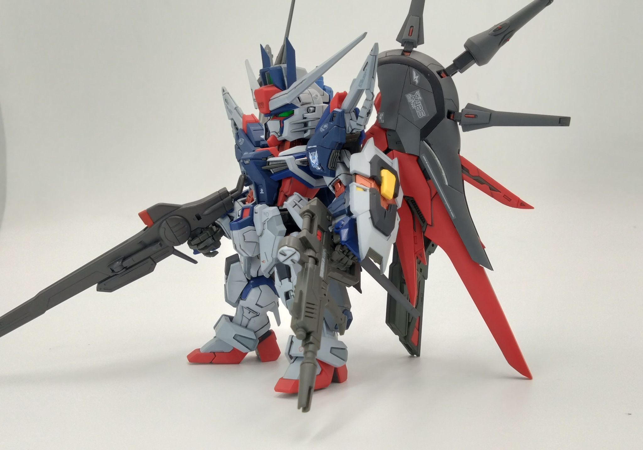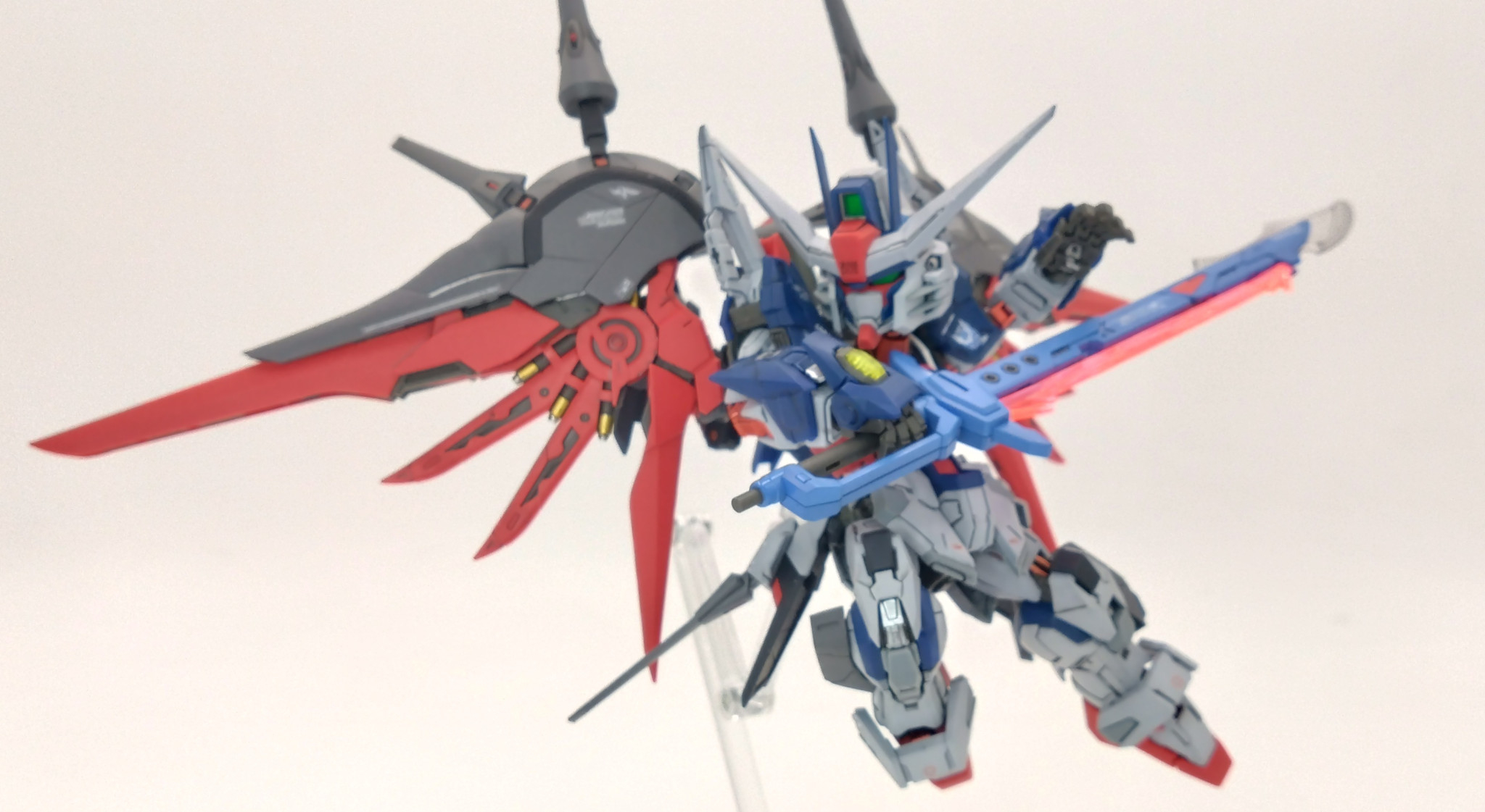 翼とのミキシングが秀逸。塗装もまた本当にMGSD?ってくらいの凄いクオリティ。本作を見てリアルタイプでレジェンド・デスティニーの共闘が見たかったなぁ(´;ω;`)
