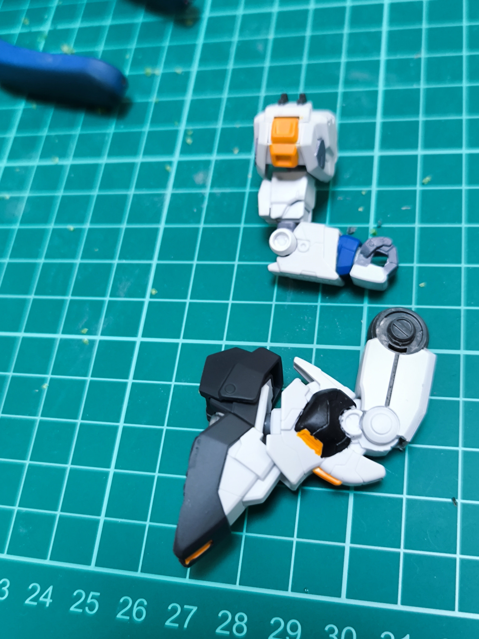 RGνガンダムの余りパーツを使いスカート周りと足の巨大化 足と腕と胴体の延長をしています