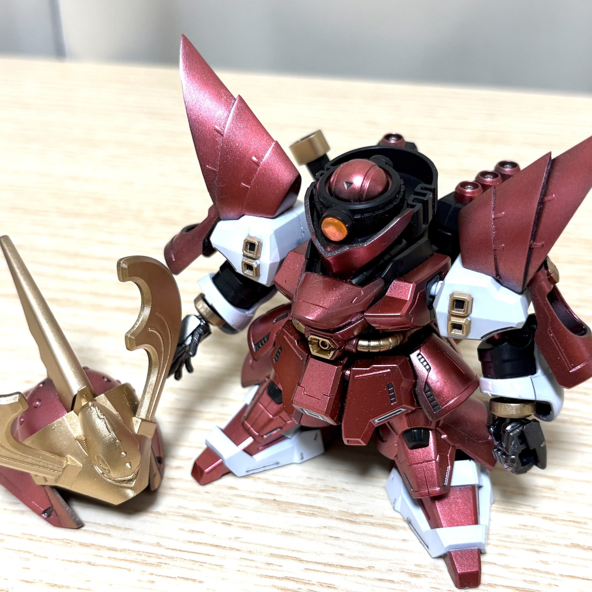 ベースキットが改造ですさまじいレベルに。そうそう、この頭の飾り、ベース時でも金色でそこそこ大きかった。それが各部にもノズルを付けたりと。ここまで来たらSDスピリットは高めにいただきたいw