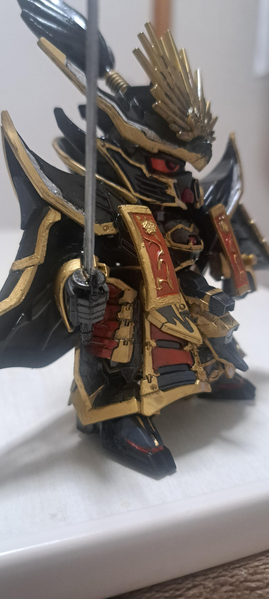 ミズカさんおはようございます。いっぱいお褒めの言葉ありがとうございます。信長さまとエピオンとそこにこのキットにはエディオンが融合しております。(笑)だいたいSDてカッコいい+可愛いとなりますがなんとなく+凛々しいも感じれるかなと。ブラックが乾いたあとちょっと色が沈んだ?輝き欲しいと思ってスモークブラック重ねたらどうなるかと。結果光沢感増したので大正解だったと。