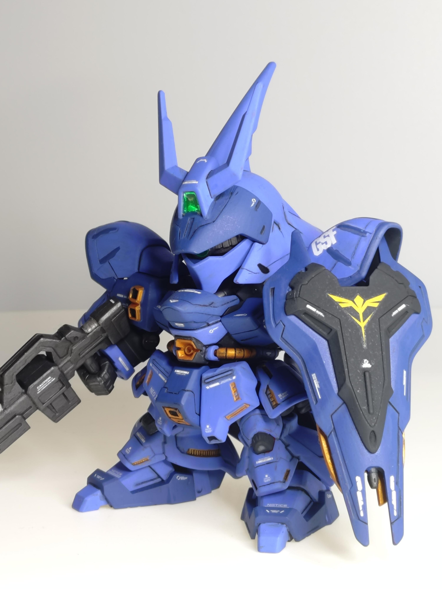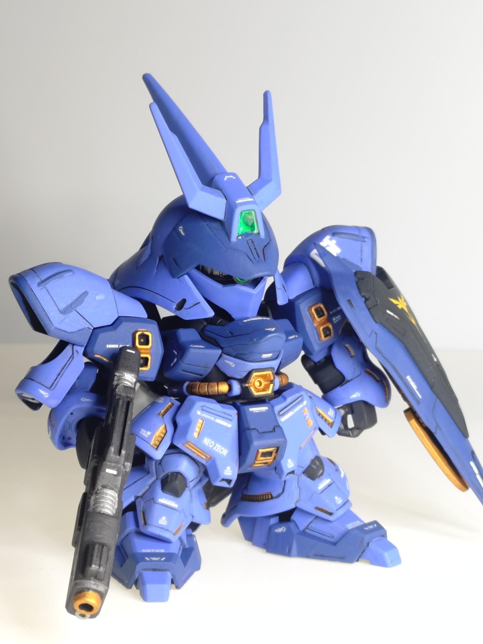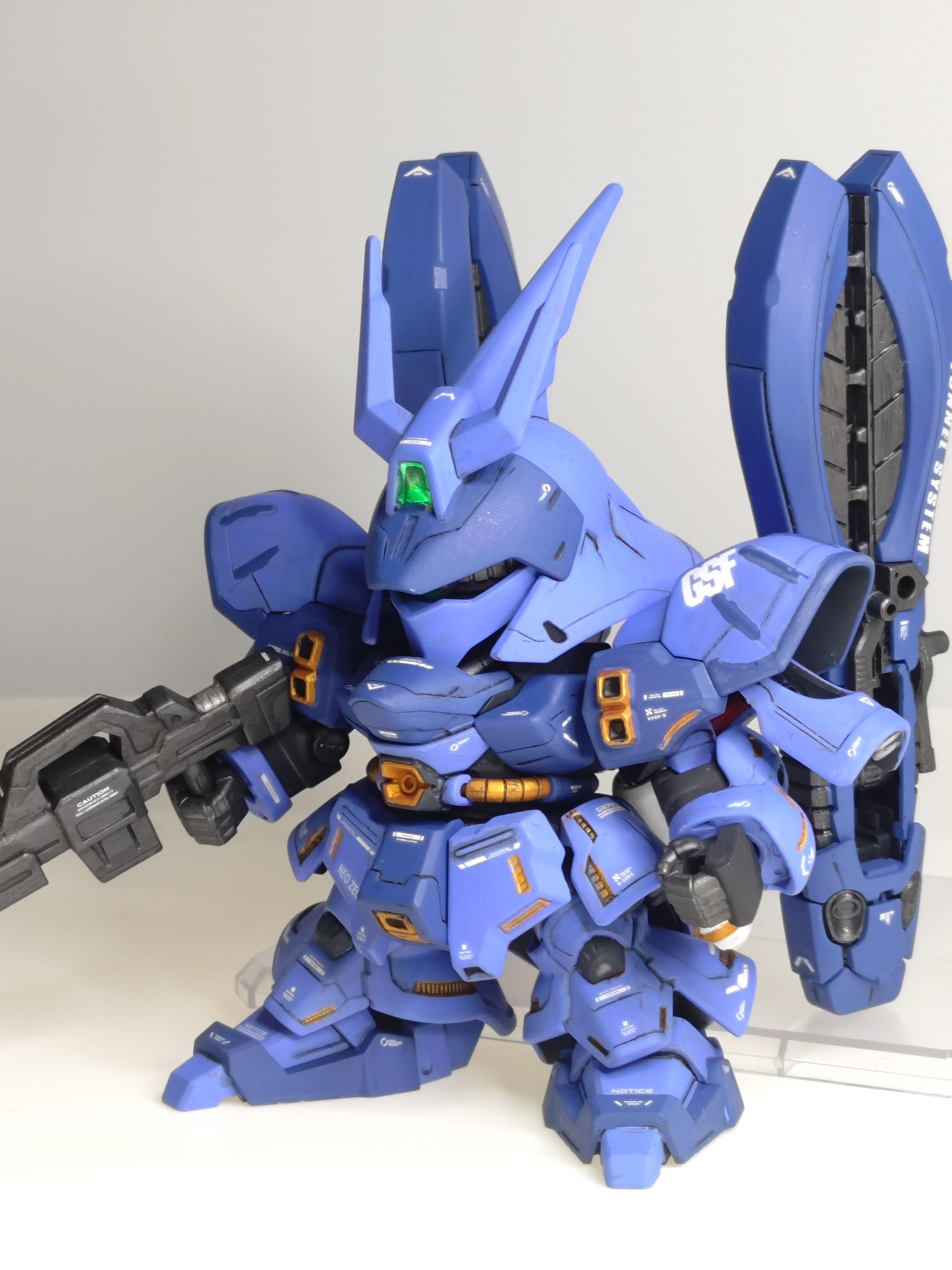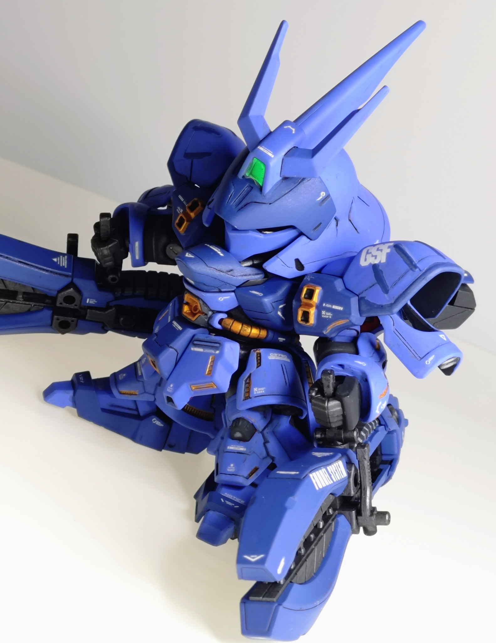 目玉の主武装。SDのサガでろくに可動できないためポージングは少なめ。加えてグリップがゆるゆるなので持たせるときはクリアランスをマステで埋めてます。
