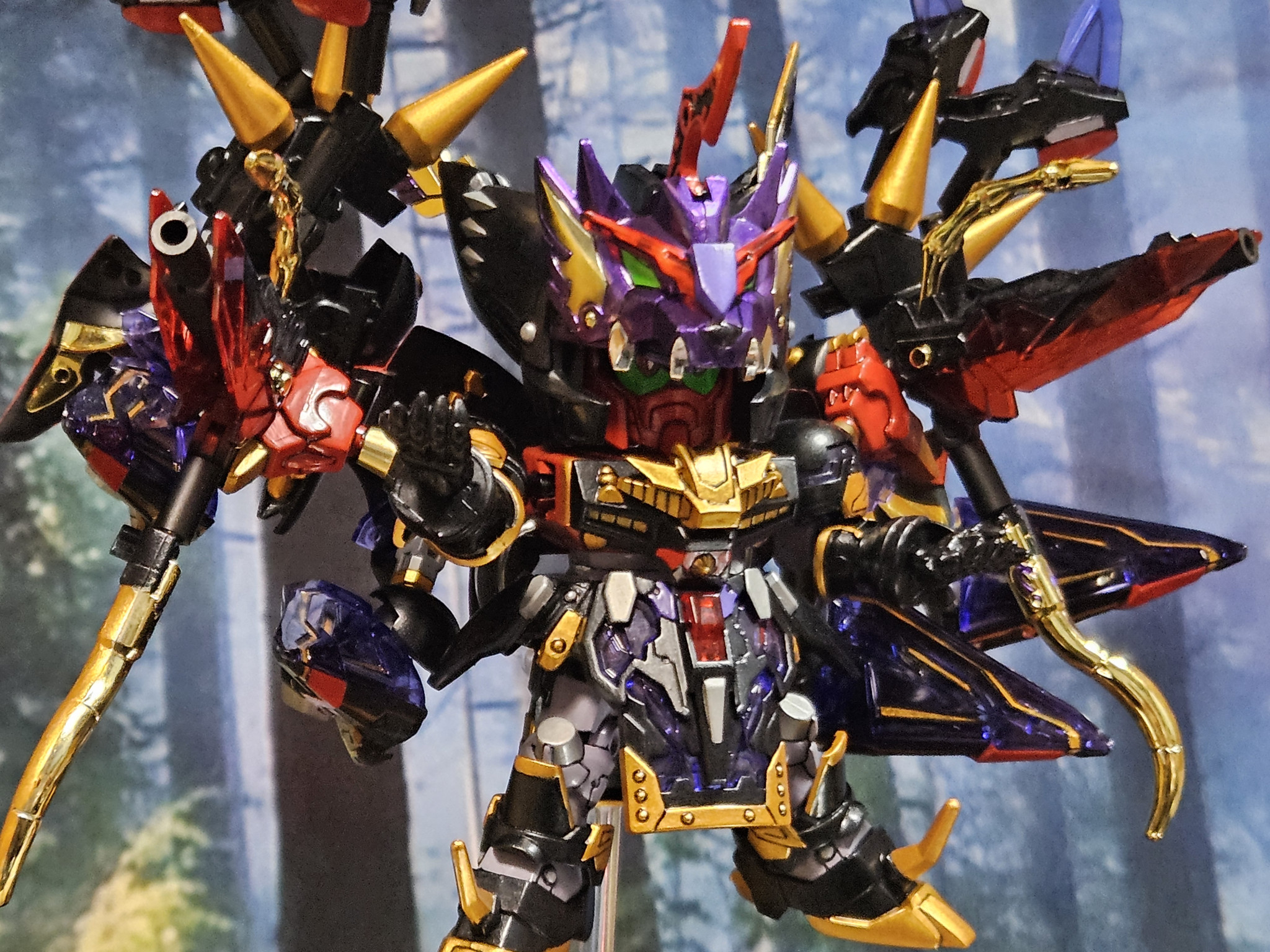 ぐれーす2 SD 2026.04/01更新 転生・魔星大将軍 40 23 いいねしたモデラー(23) 0 0 作品を共有 久しぶりのミキシング作品 魔星大将軍に典韋マスターガンダム×2+αをミキシング。HGマスターガンダムからも部品を拝借 お馴染みのポーズ格闘技使うので関節をだいぶ弄りました。素立ち格闘武器東方先生がよく使う布っきれの代わり先端に武器取付け可マント状態大将軍にはキャノン砲マントに付属するビットからもビーム砲撃可能ダブルダークネスフィンガー腕を巨大化 ダークネスプレッシャー塗装前 観覧ありがとうございました。 コメント コメントをして応援しよう コメントにはログインが必要です ぐれーす2 ガンプラ 粘土細工 イラスト描き等を趣味に活動してます。プラモは卒業してましたがGoogleからやたらとGUNSTRなる場所から情報が送られてくるようになり気が付いたら登録していましたw楽しませてもらってます。 スマホ故障の為 LINEとGUNSTAのデータ消えました。改めてよろしくお願いします 9 BB戦士まとめ その一 写真の少ない塗装済み作品達です。 15 SDガンダムまつりだよ!No.3 L・H・クラッシャーズ集結… L・H・クラッシャーズ残りのメンバー ミディガンダム&ハリケ… 13 聖機兵物語 SDガンダムまつり関連作品。ナイトガンダムストーリー聖機兵物… 9 SDガンダムまつりだよ!No.2 L・H・クラッシャーズより… SDガンダムまつりでもお馴染みペナルティーキックオールディー… ぐれーす2さんのページ この作品をお薦め作品に設定する Please login to update your profile! Please login to update your profile! Please login to update your profile! Please login to update your profile!