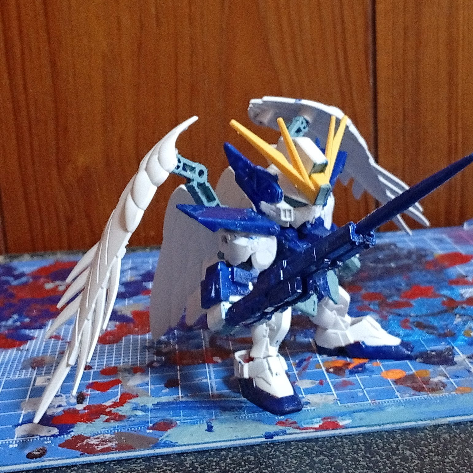 Abraham. SD 2026.04/07更新 ウイングゼロ 8 32 いいねしたモデラー(32) 0 0 作品を共有 ウイングガンダムセラフィムを参考に腕と武器をシルエットが大きく見えるものに改造し、カラーリングも似せて塗装しました。 腕の本体はsdexエアリアル、肩と袖のパーツはbb戦士のZZガンダムのものです。 SDEX ウイングガンダムゼロEW コメント コメントをして応援しよう コメントにはログインが必要です Abraham. 主にHGで筆塗りとミキシングを楽しんでいます。 1 ウイングガンダム 旧キットジェミナスの腕、スターバーニングの頭、30mmフォレ… 1 サザビー SDEXサザビーをベースに戦国アストレイのアンテナとジャンク… 1 ウイングガンダム 30mmイグライトとミキシングして量産機風に改造。ライフルに… 1 夏侯淵トールギス 騎士風に塗装して馬上槍風の武器も製作しました。 Abraham.さんのページ この作品をお薦め作品に設定する Please login to update your profile! Please login to update your profile! Please login to update your profile! Please login to update your profile!