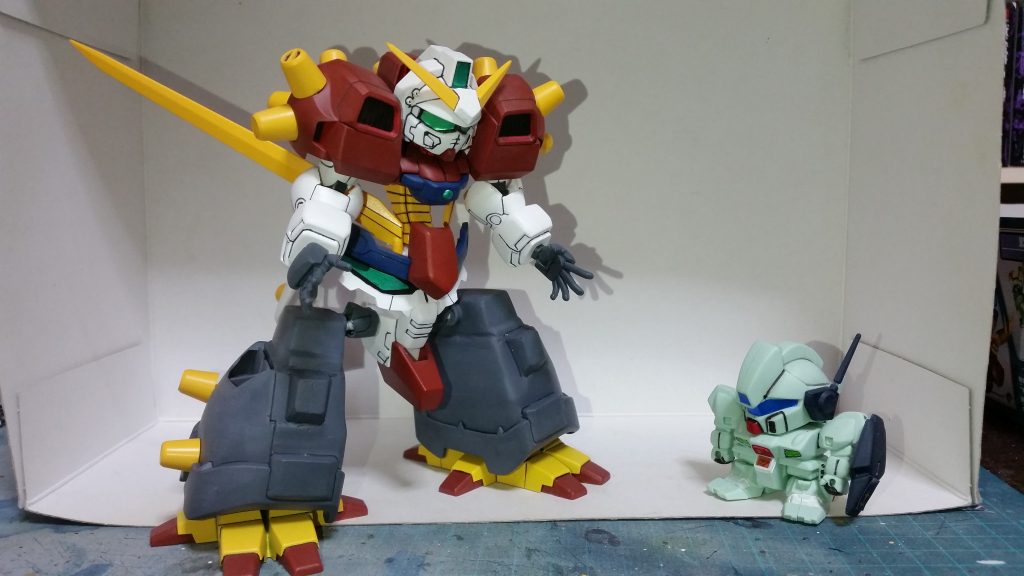 上半身がBB戦士デビルガンダム、下半身が1/144デビルガンダム最終形態をベースに改造を施しています。