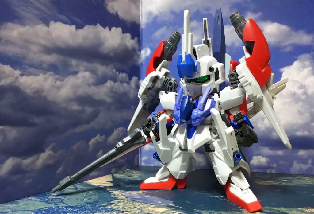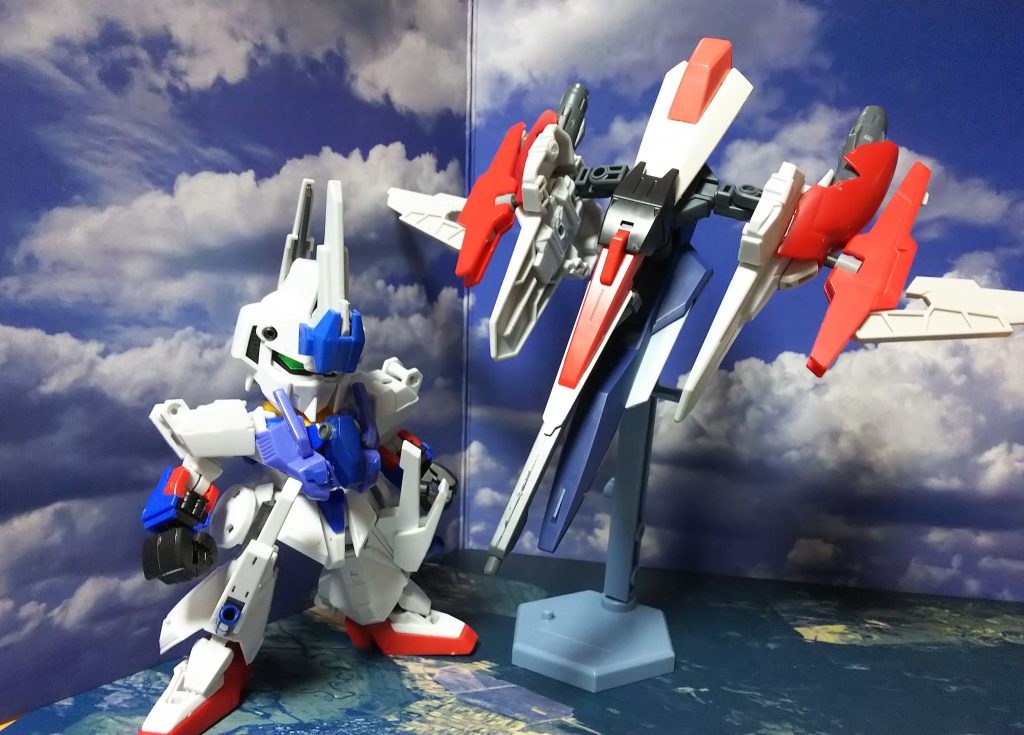 本体背中に付いているバインダーをシールドブースターに合体、シールドバスターライフルももうひとつのビームライフルと合体させ