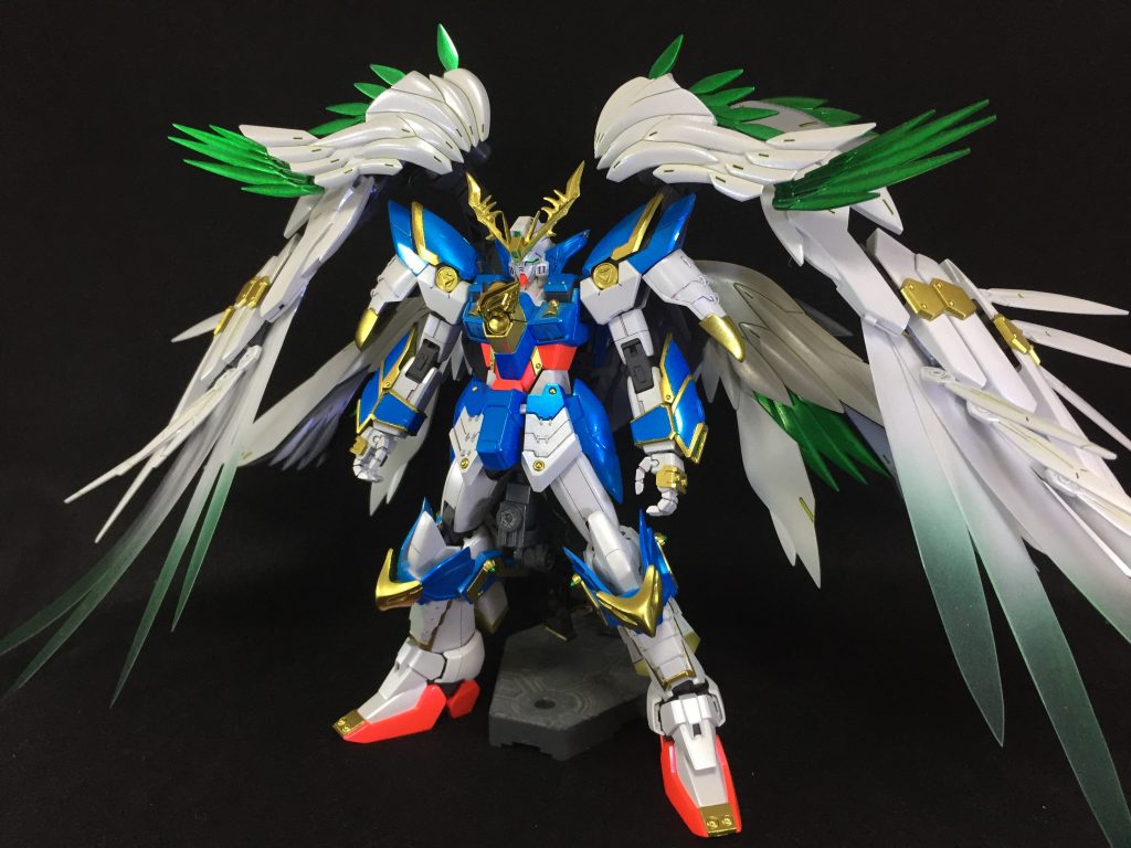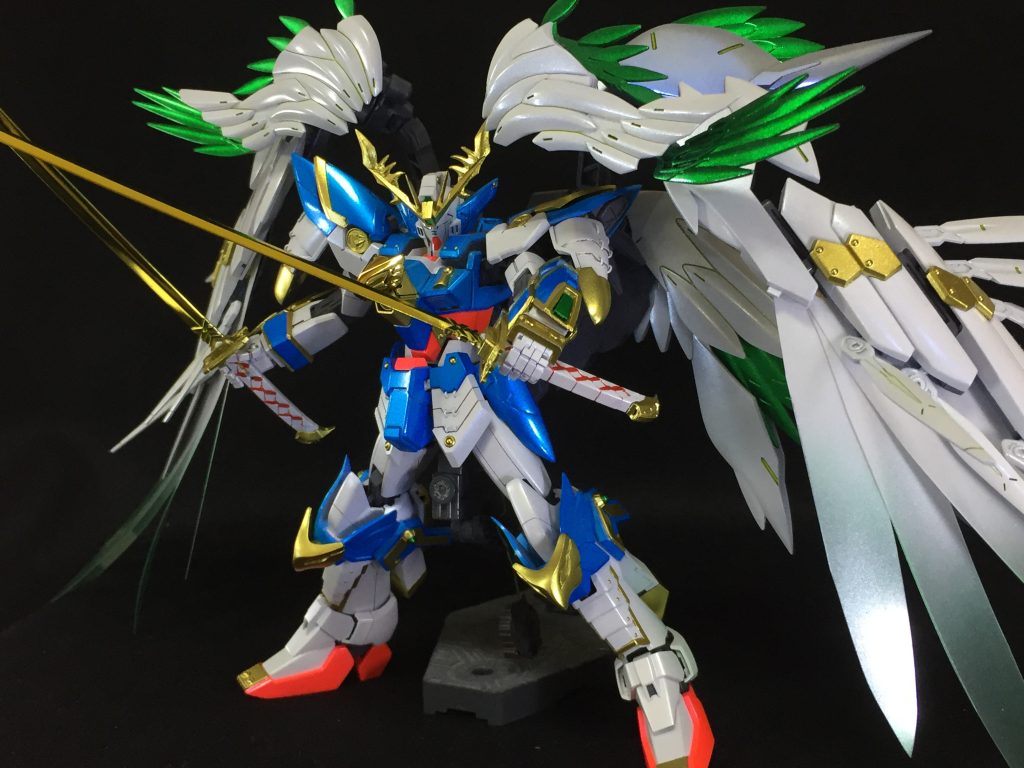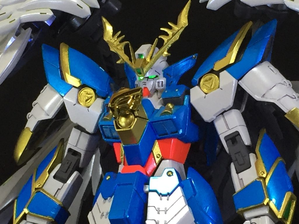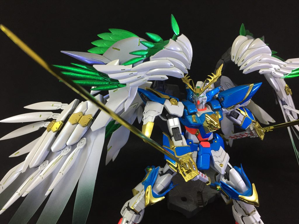 リアル体型武者ウイングゼロに改修した工作技術や召喚中を再現できるようにパール塗装を用いた点を見てもらえるようにという狙いで作ってます。