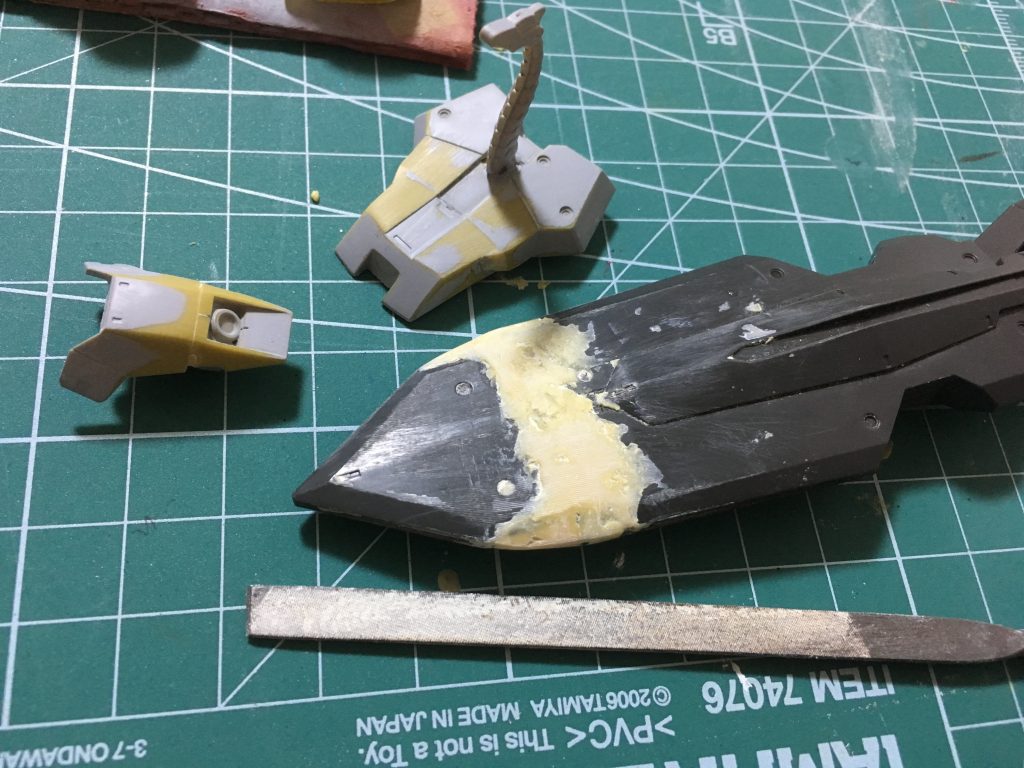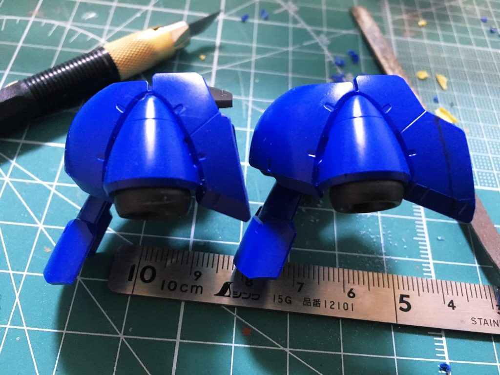 ヴァルキュリアバスターソードはHGサイズのままではあまりに巨大だったので、刃を大幅にカットした上で接合し短くしました(それでもかなり大きいです)。