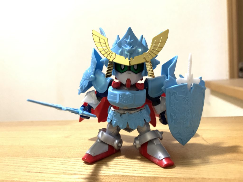 兜の一部と肩、胸、腰の鎧を交換してフルアーマーに。胸部分は劉備ガンダムのパーツをベースにフルアーマーの鎧をかぶせて加工。ショットランサーは騎士ガンダムの槍を加工して交換してます。