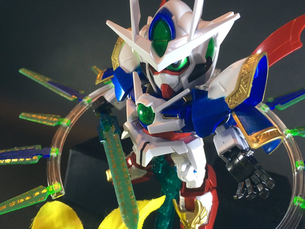 今回はそうした背景から、三国伝における水鏡先生ガンタンクや慮植ジムキャノンのような老師モチーフは避け、ダブルオークアンタの凛々しさそのままに若き日の孔子の精悍さをイメージさせて頂きました。