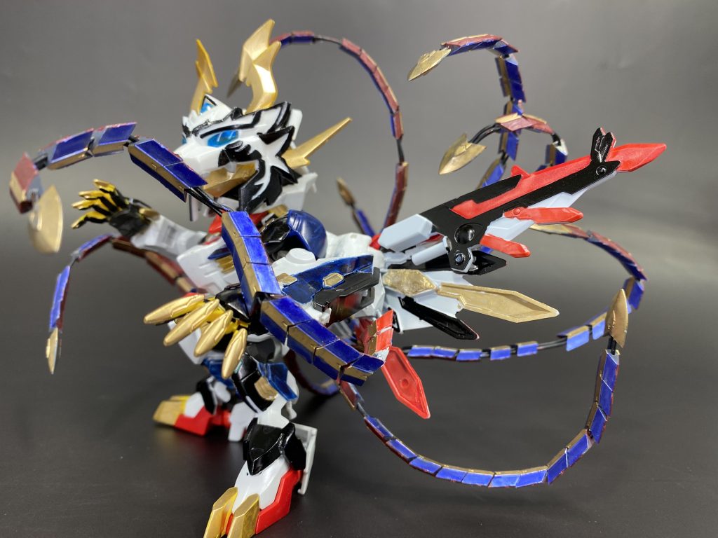 クラムカフェのバルバトスコンペに出展。 バルバトス最終形態、というコンセプト。 機動性、攻撃性をあげ、ミカのフルパワーで戦えるよう、9本の尾で戦います。 モチーフとして、宝塚のホワイトタイガーと火の鳥を加味。 #SD連合兵庫支部 #兵庫SD御闘血衆