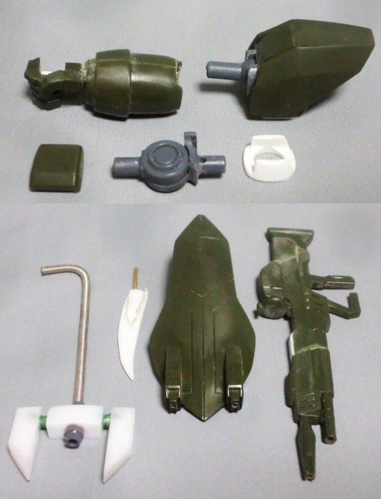 頭部:SDEXデスティニー 胴体内部,腰部:HGダブルオー 上腕:HGジン 肘関節:HGユニコーン 大腿部:HGジャスティス上腕 足首:1/144ガイア前腕 各所関節部:ボールデンアーム球体ジョイント 腰部アンカー:WAVEAスプリング を使用し、ライフル,シールドは数ミリ短縮してます。腰部アンカー射出状態はプラ棒を加工して差し替え式
