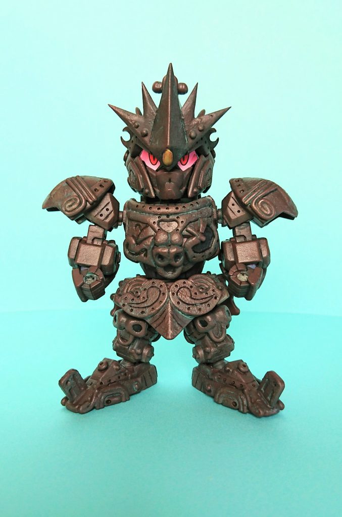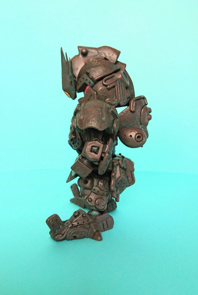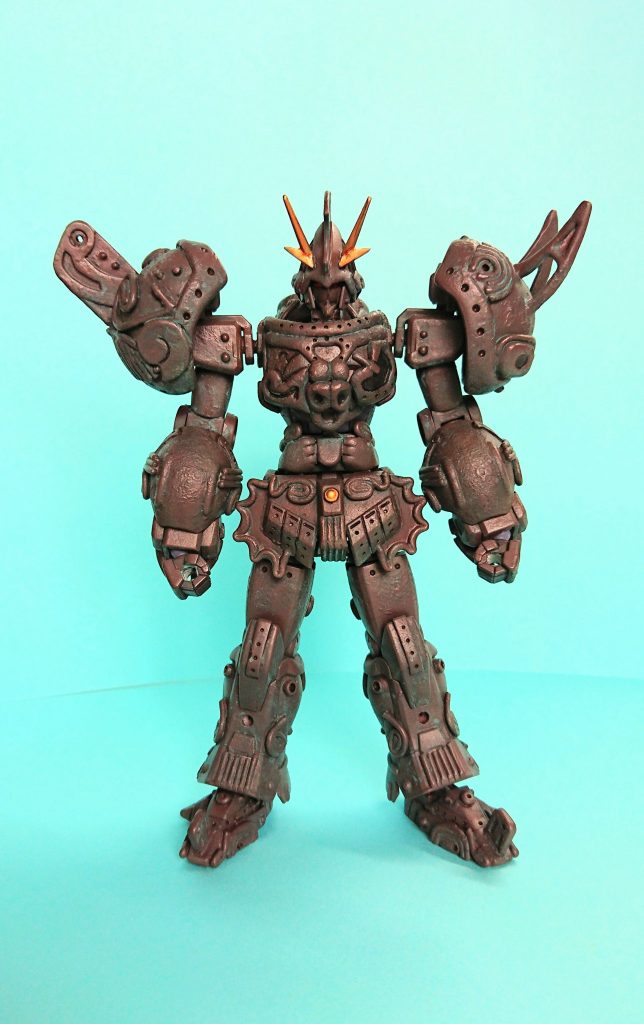 カラーリングはガンダムの世界観にはよせずに。単色で、土器・土偶の陶器や青銅の質感に見えるよう工夫してみました。