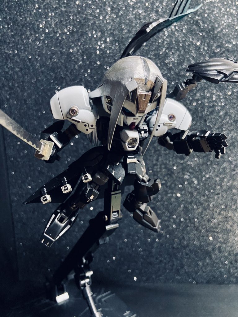 いつか作ろうと思ってたセフィロスもどき。そのためにウイングゼロカスタムを買ったはずが、過去作のアルトロンに頭を取られてしまったので眠ってました。GP04再販時は素直に高頭身化してカッコよくするつもりが、あれ?この肩いけんじゃね?となり、晴れてリユニオンとなりました。