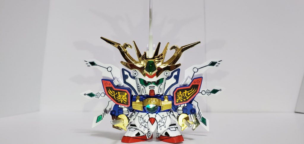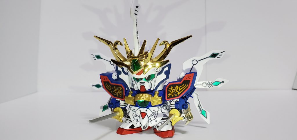 スーパーモード、爆熱の陣。愛用の刀は爆烈刀と熱破刀。羽織が開いて広がり、ゴッドガンダムのハイパーモードのような形になります。
