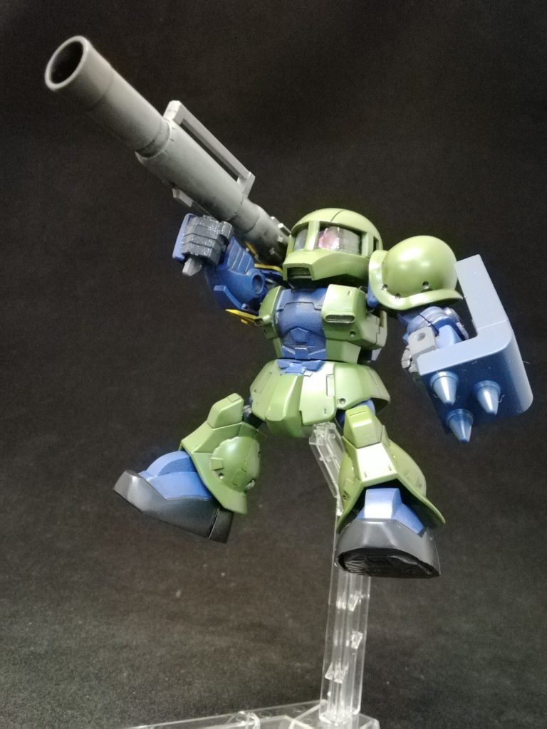 ありがとうございます♪キット自体の設計が素晴らしいお陰かなぁと思っております!!何となく、旧ザクはザクⅡよりもいろんな武器を使ってるイメージがあったので、色々揃えてみました。