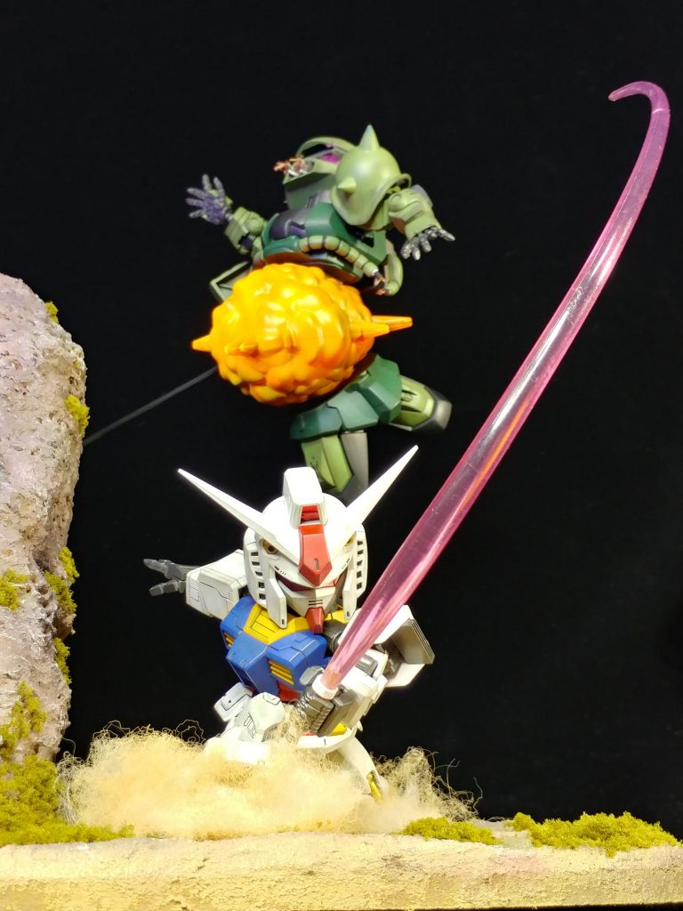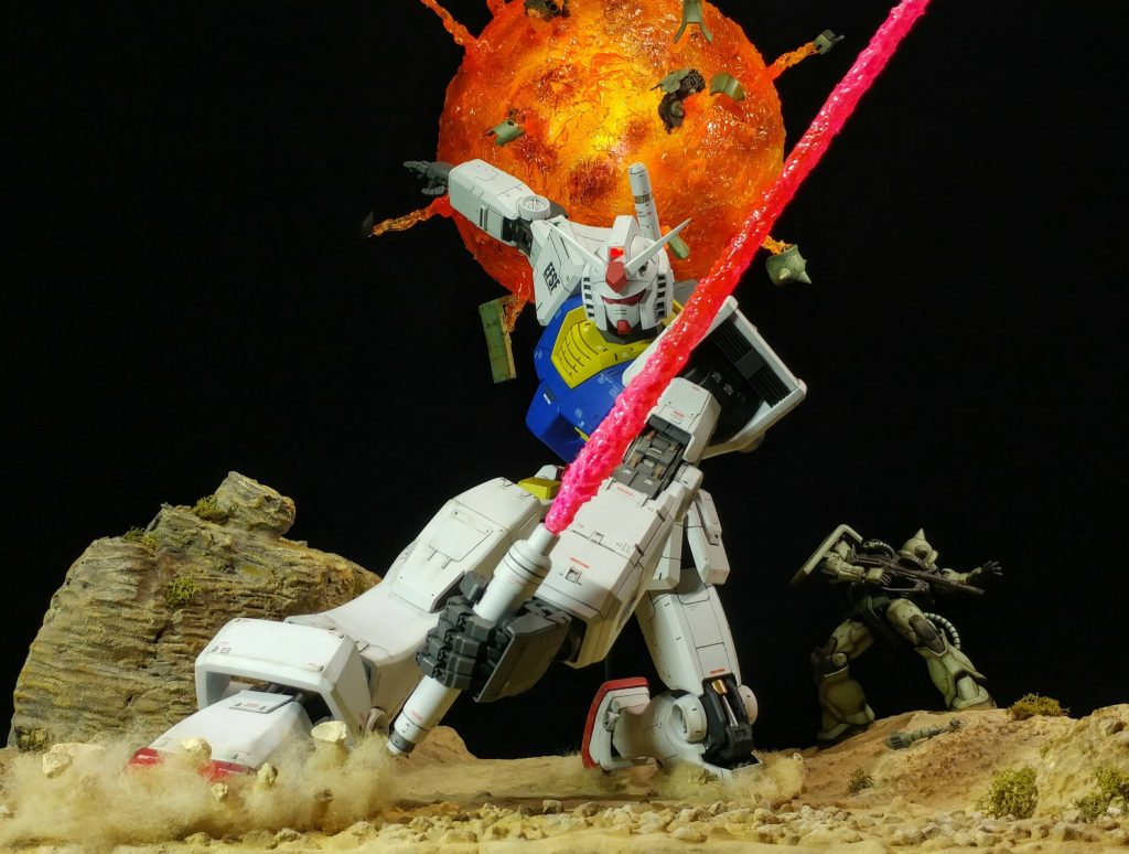 コントラストを強くしてありますが、ジーンはきっと最期にガンダムの後ろ姿を見たと思います(笑)