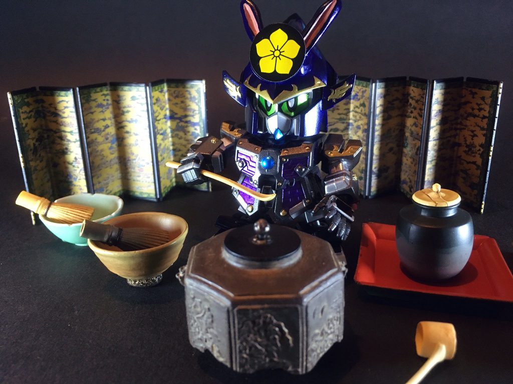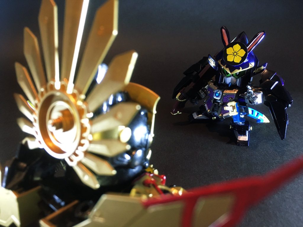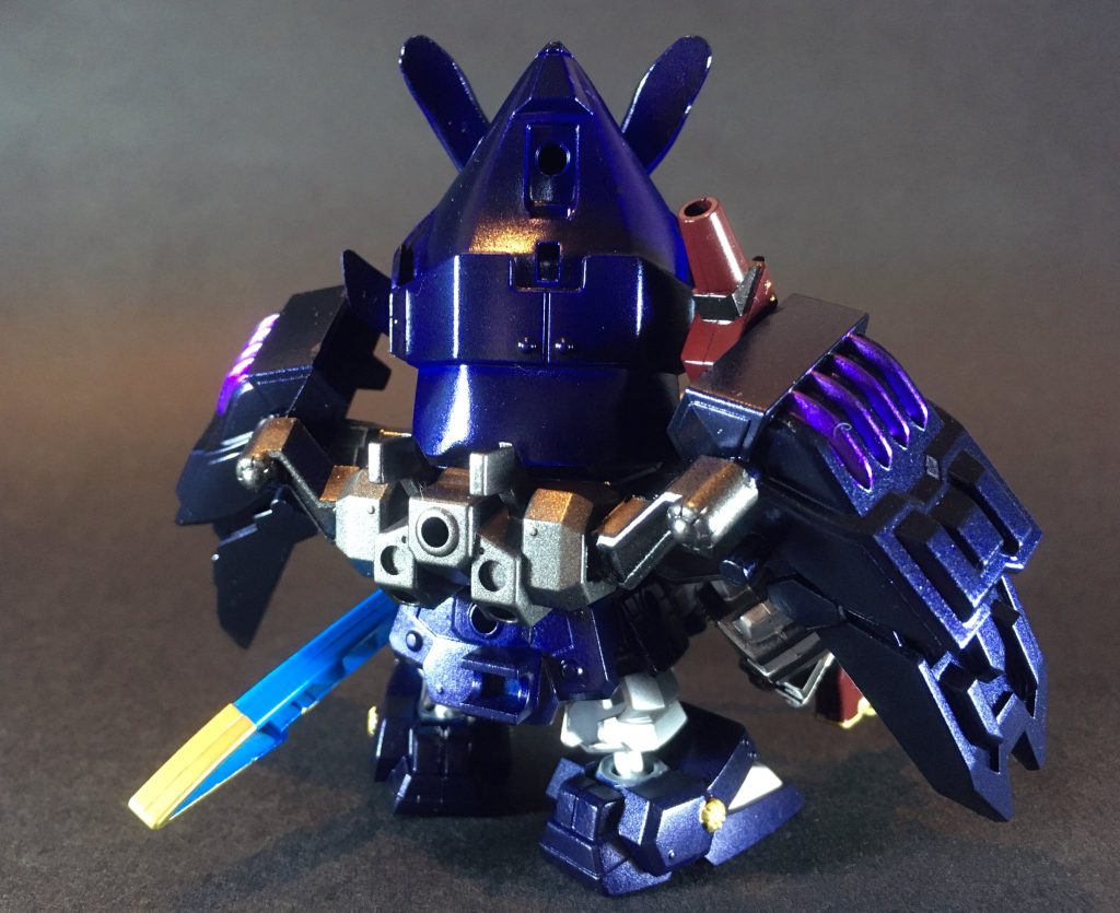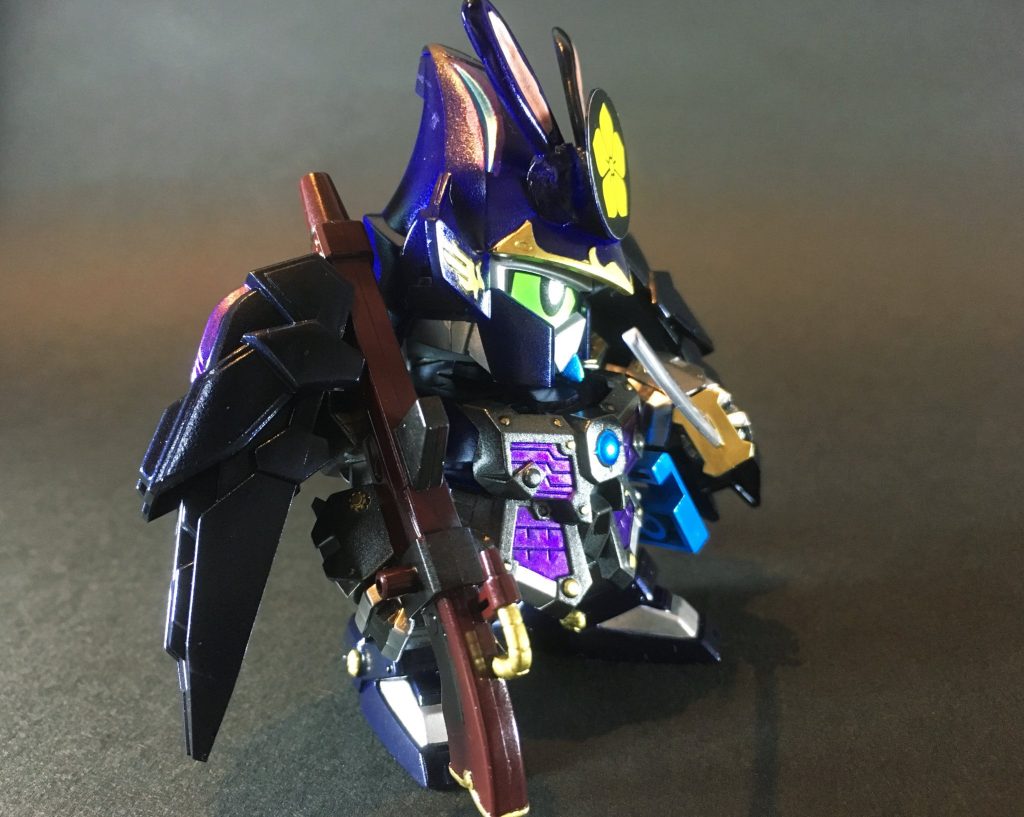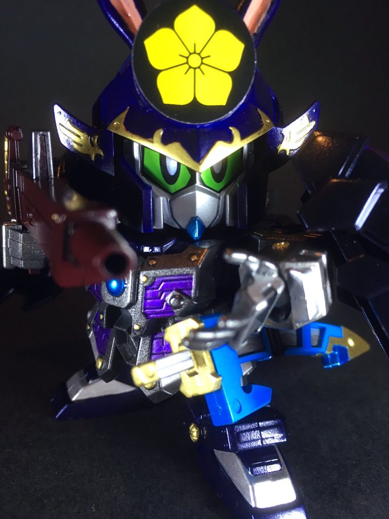 今回は織田信長頑駄無の魔王感溢れるデザイン・カラーリングを意識して、信長の右腕たる参謀イメージでSD武者烈伝・天翔狩人摩亜屈(マークツー)をベースに製作しました。