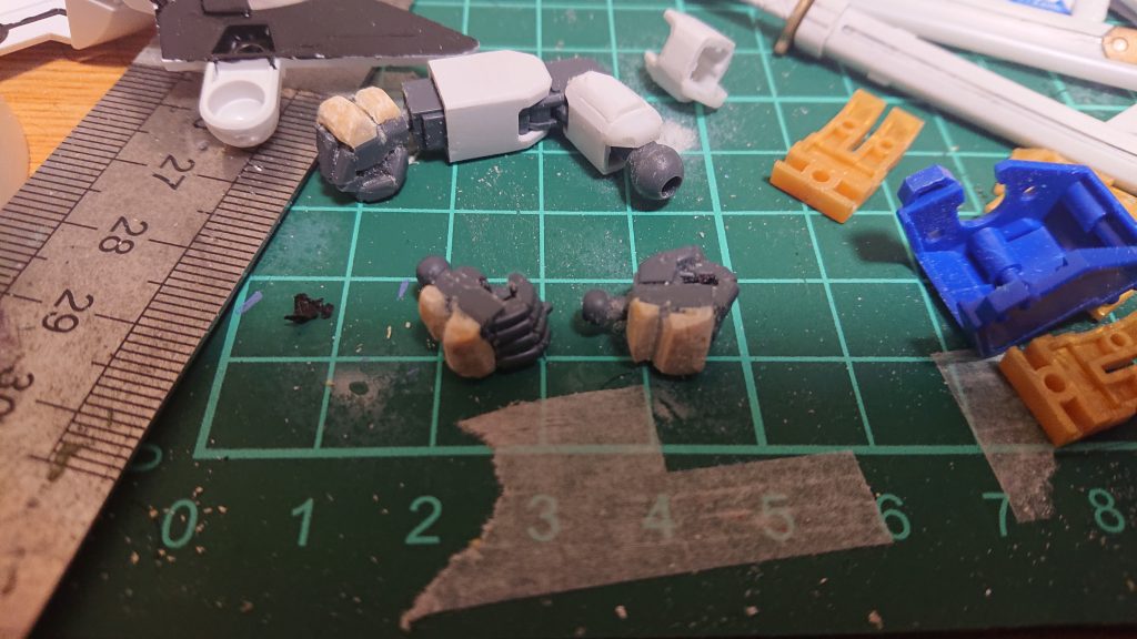 手首の表情付けや胴体の隙間なんかはパテを使用しました。