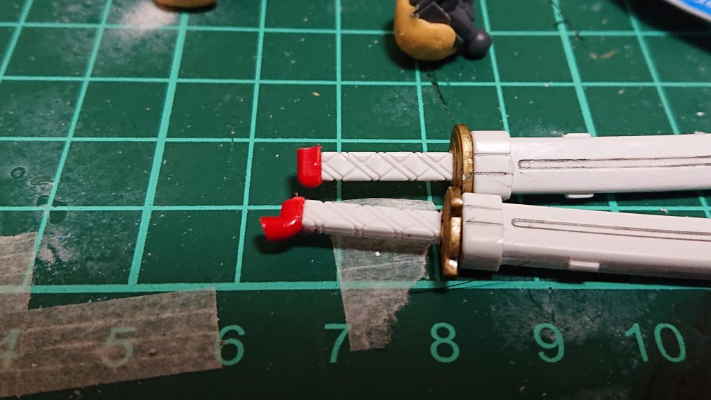 刀の柄の部分の赤が塗装剥げ多かったのでランナー使って色付け致しました。