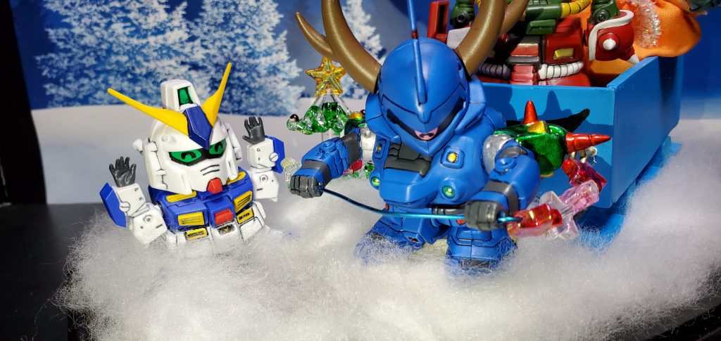 機動戦士ガンダム0080 ポケットの中の戦争のSDガンダムを使っての楽しいクリスマス作戦!みんな笑顔です。ハッピークリスマス!